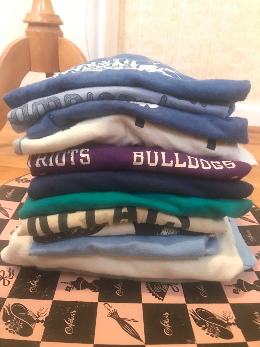 10 short sleeve and 2 long sleeve t-shirts from the 1970’s and 1980’s size small and medium. In good vintage worn condition.