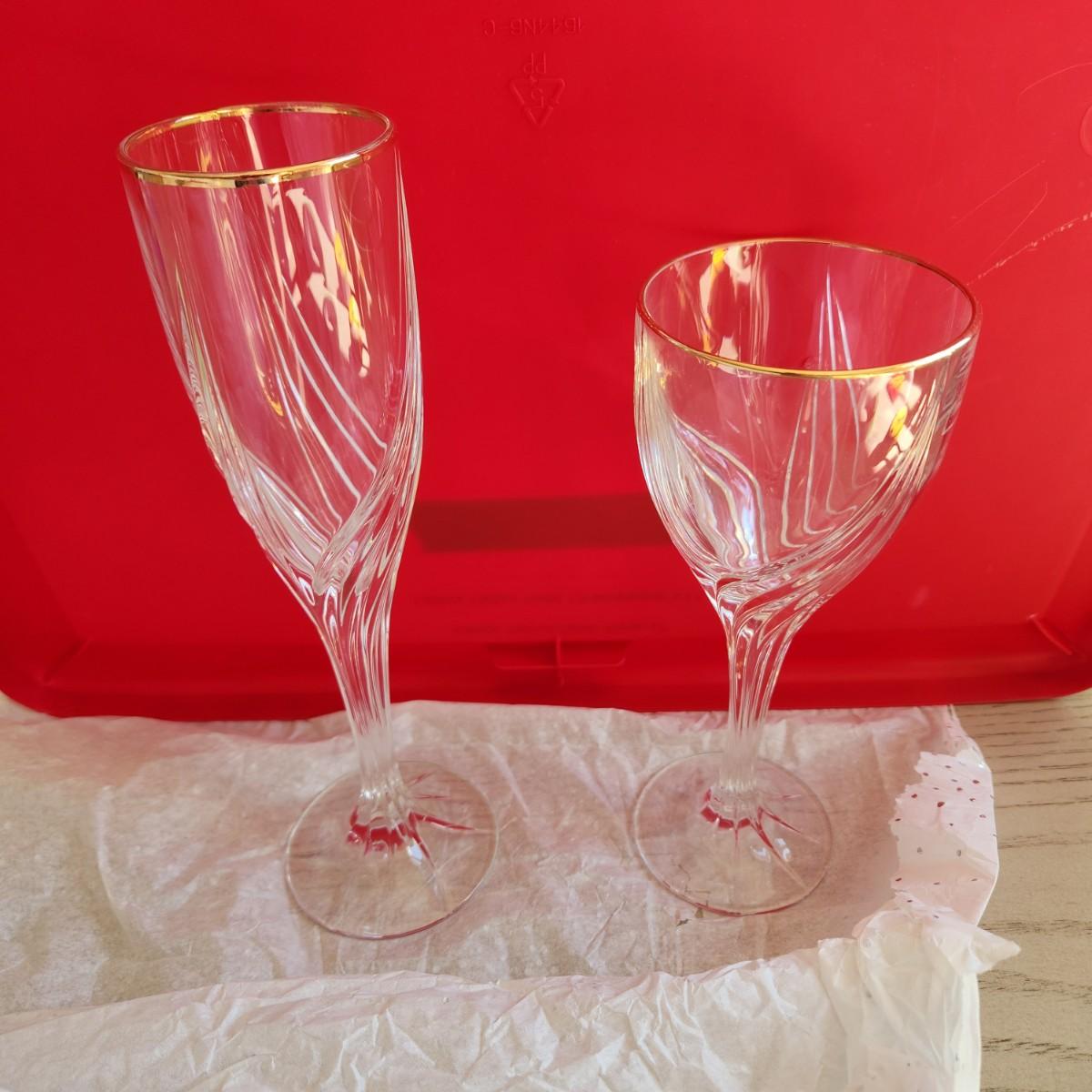 lot of 18 Lenox Debut Crystal Gold Trim 7 Wine 11 Champagne glasses
