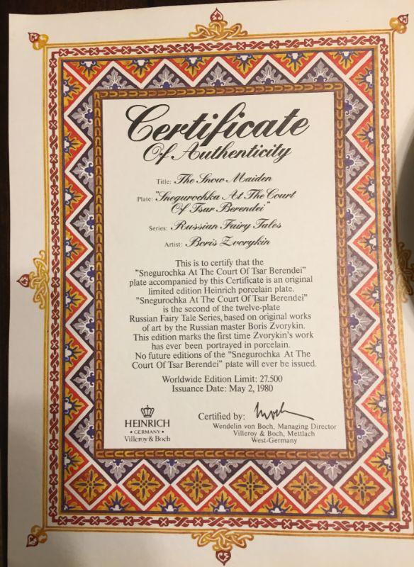 In excellent conditions, 13 plates hand painted by Tianex/Bradex .They also come with 11 Certificates which I didn't match with the plates in order to expedite the selling process.