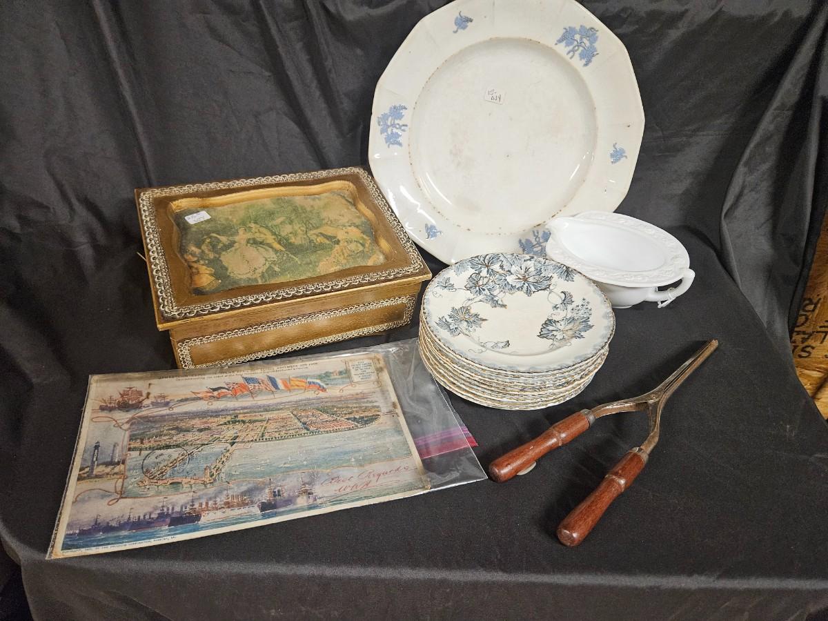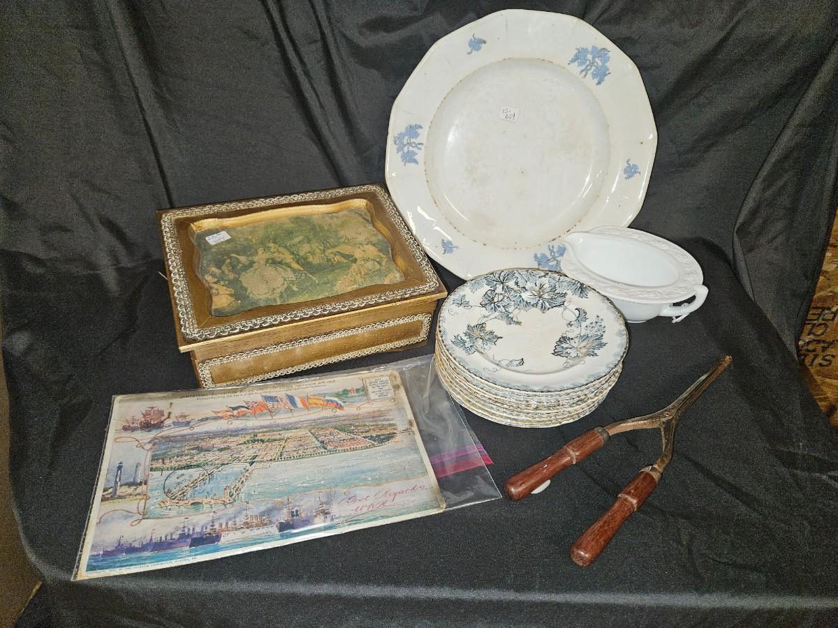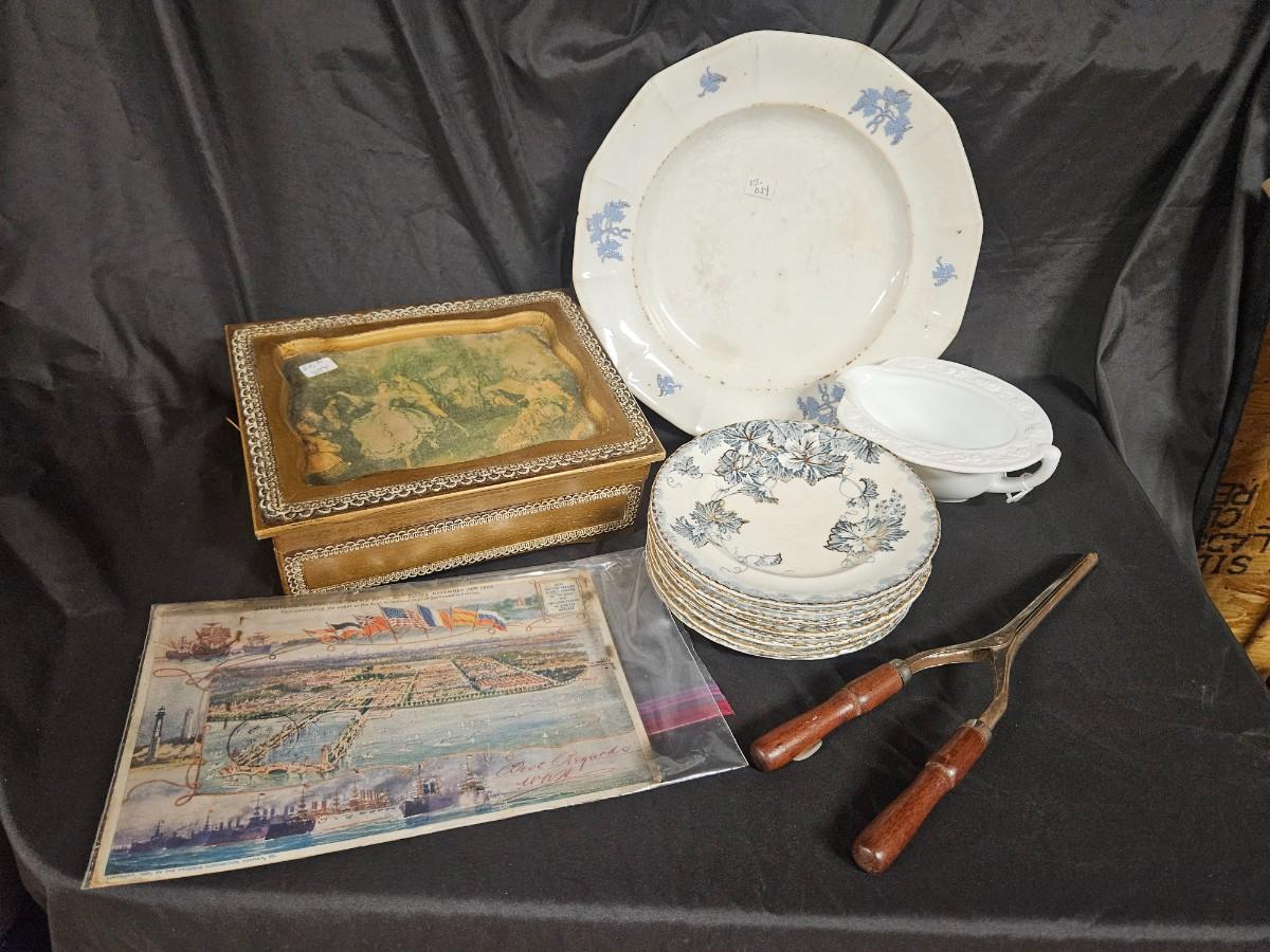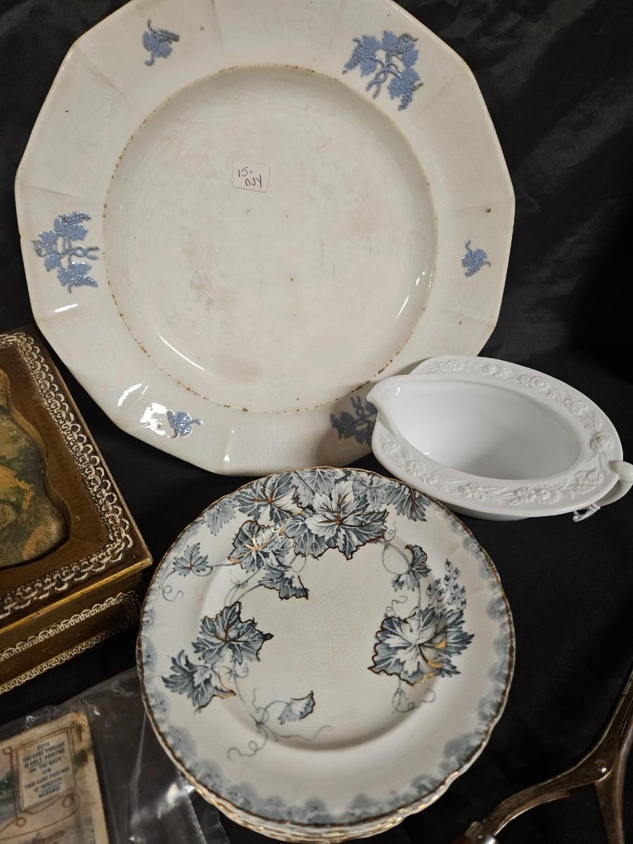 Lot of 13 Vintage Items Including Chelsea Grape Ironstone Plate, Jewelry Box and Hair Curler