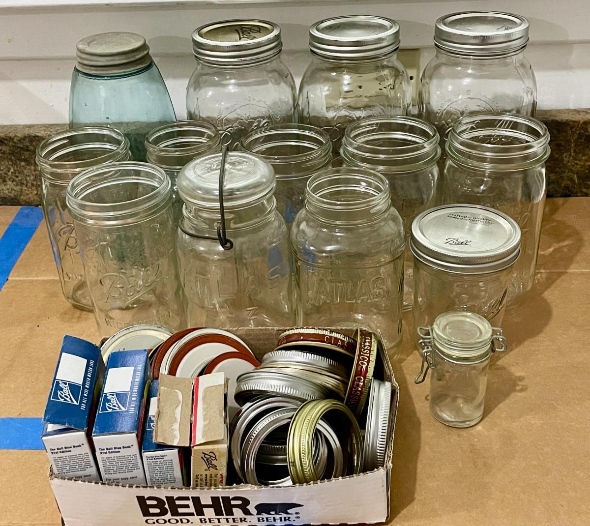 Lot of 14 Ball & Atlas storage/canning jars + lids