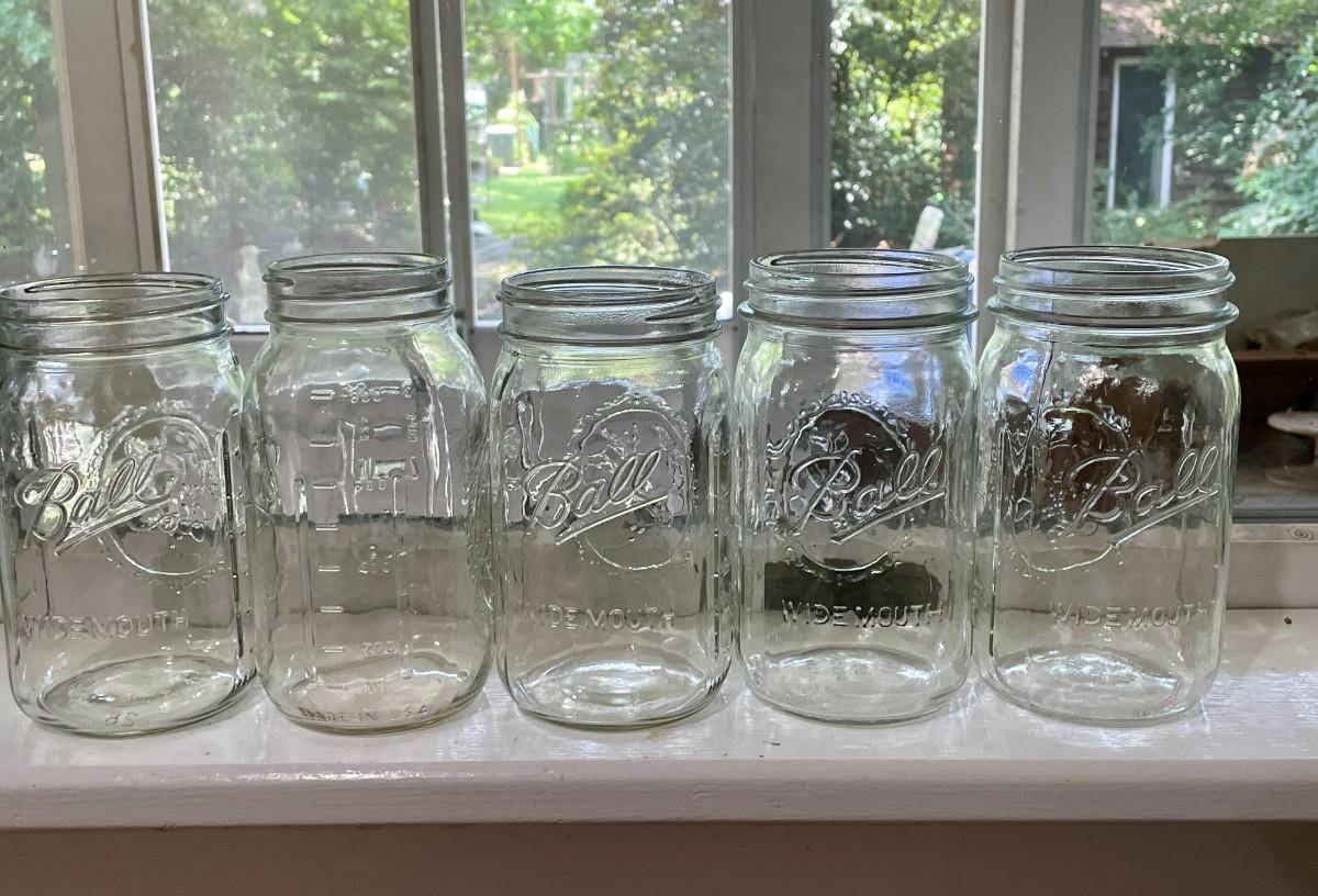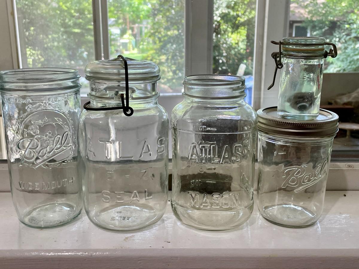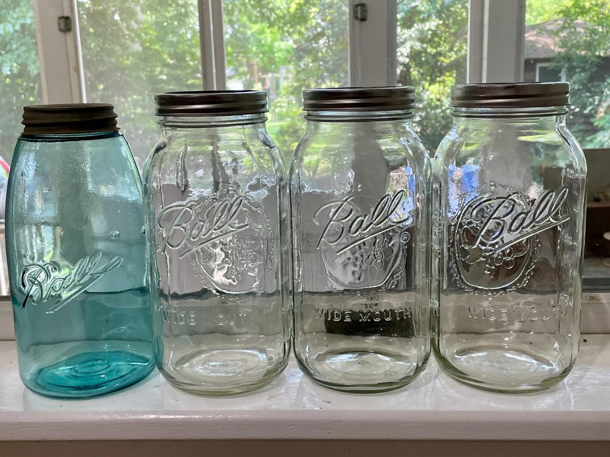 Includes a vintage blue glass Ball jar.