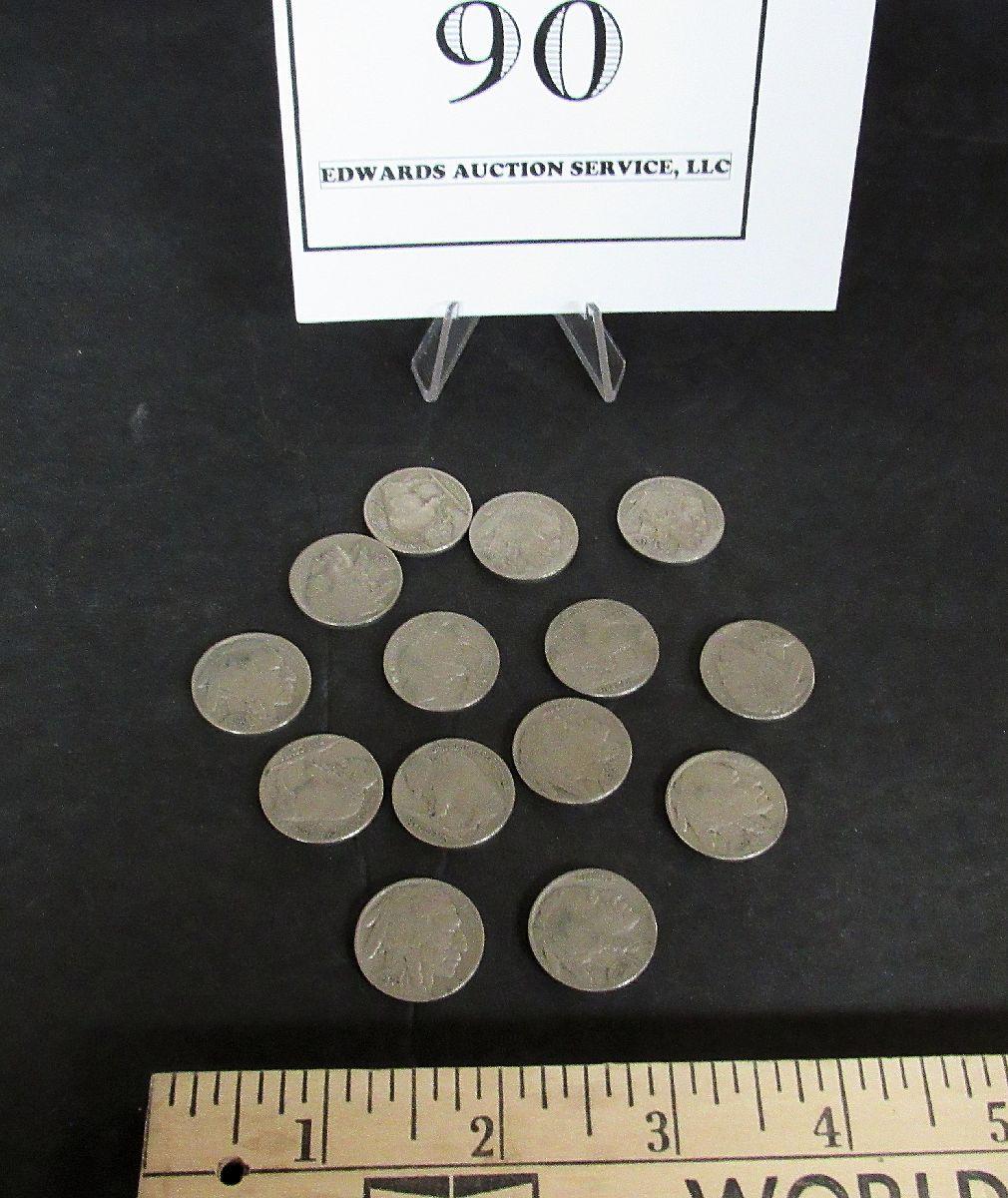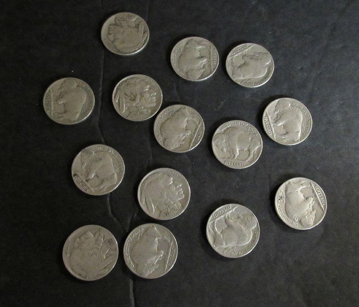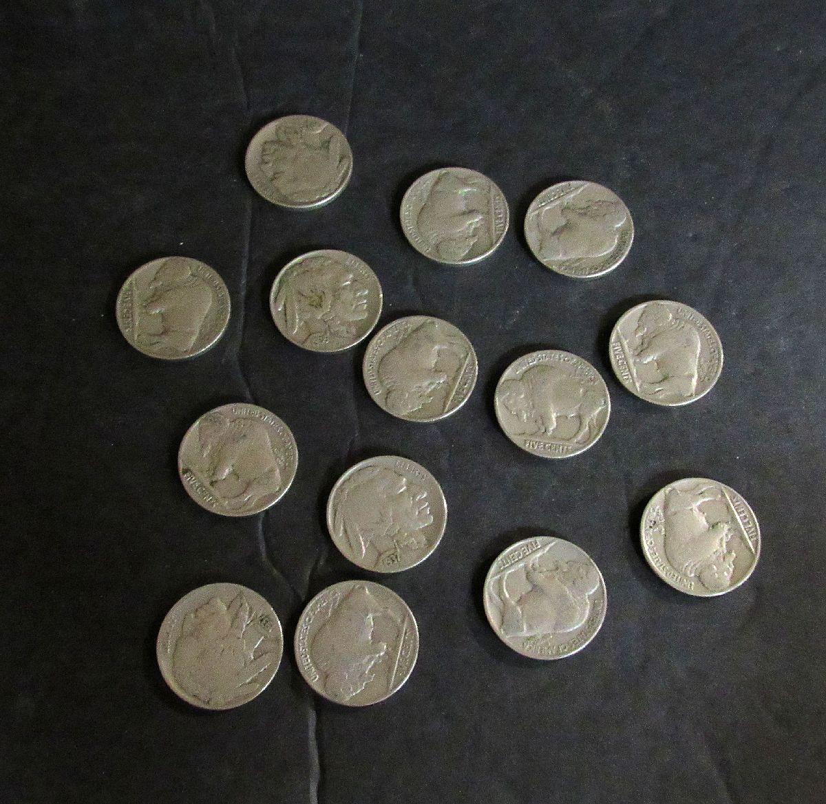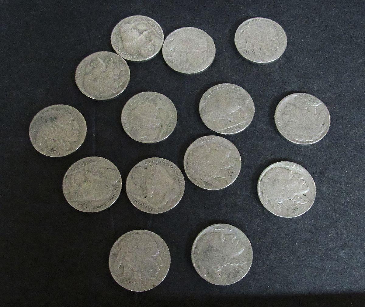 Lot of 14 Full Date Buffalo Nickels, Random Dates Including 1935, 36, 37