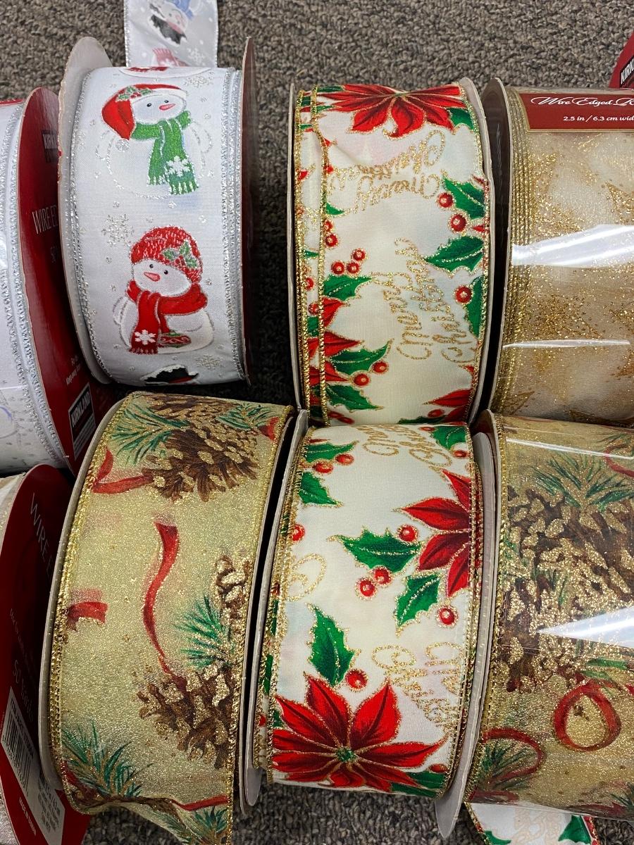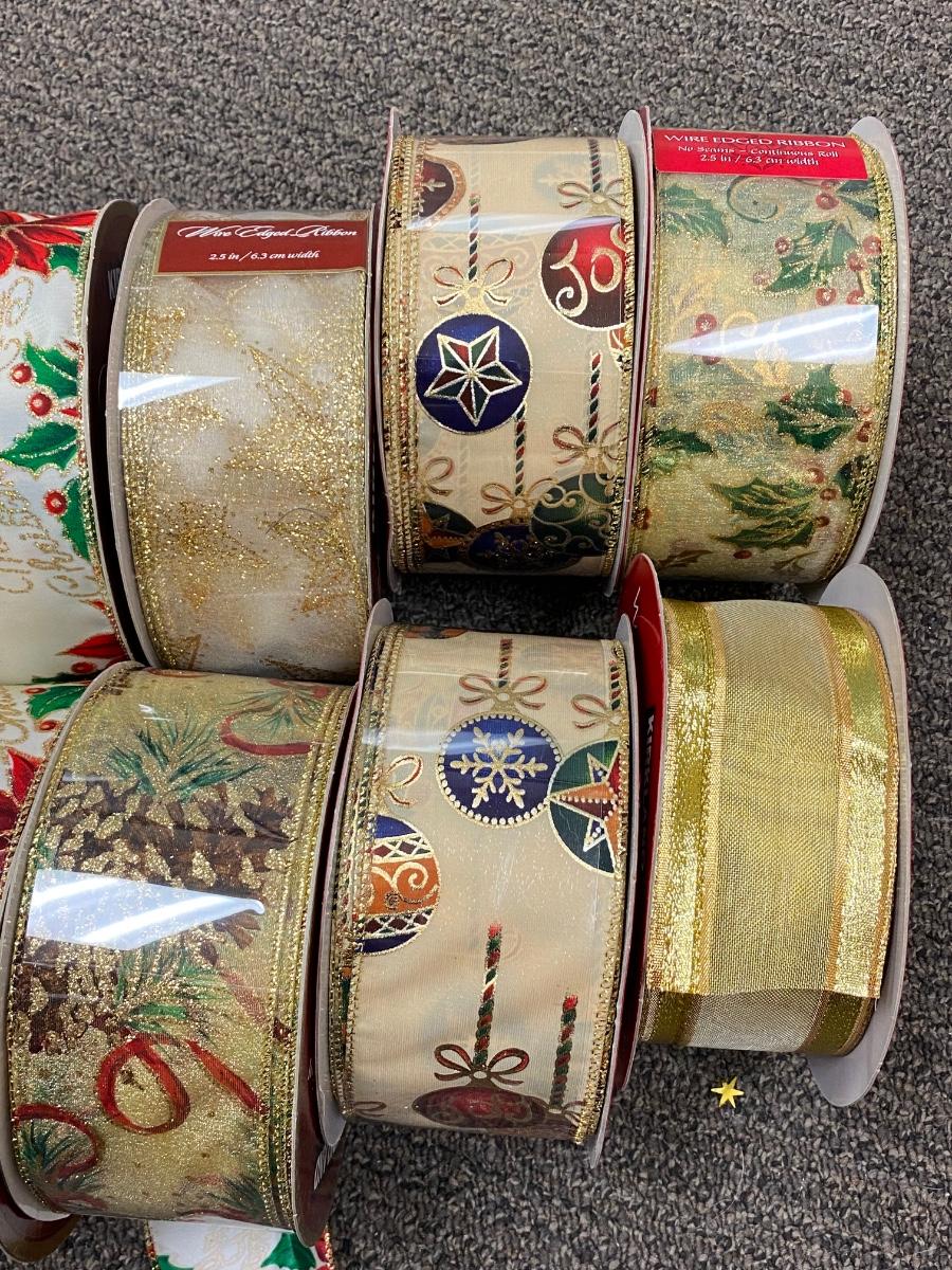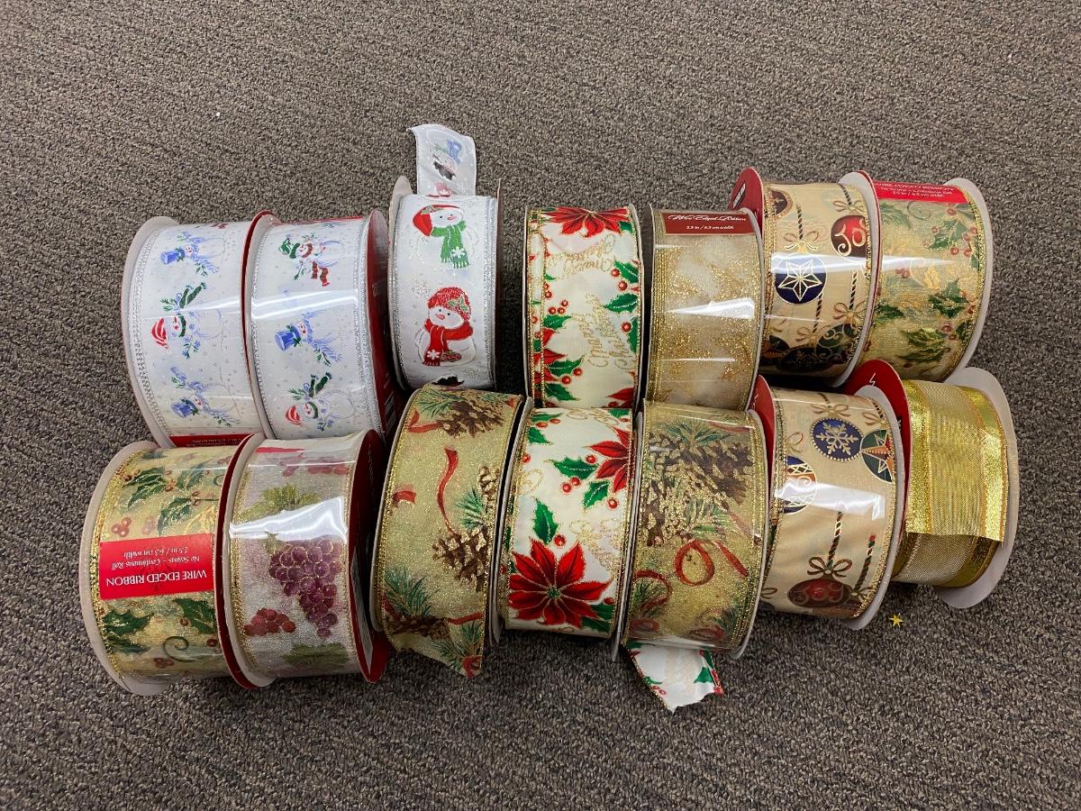 Lot of 14 Large Spools Wire Edge Christmas Holiday Ribbon