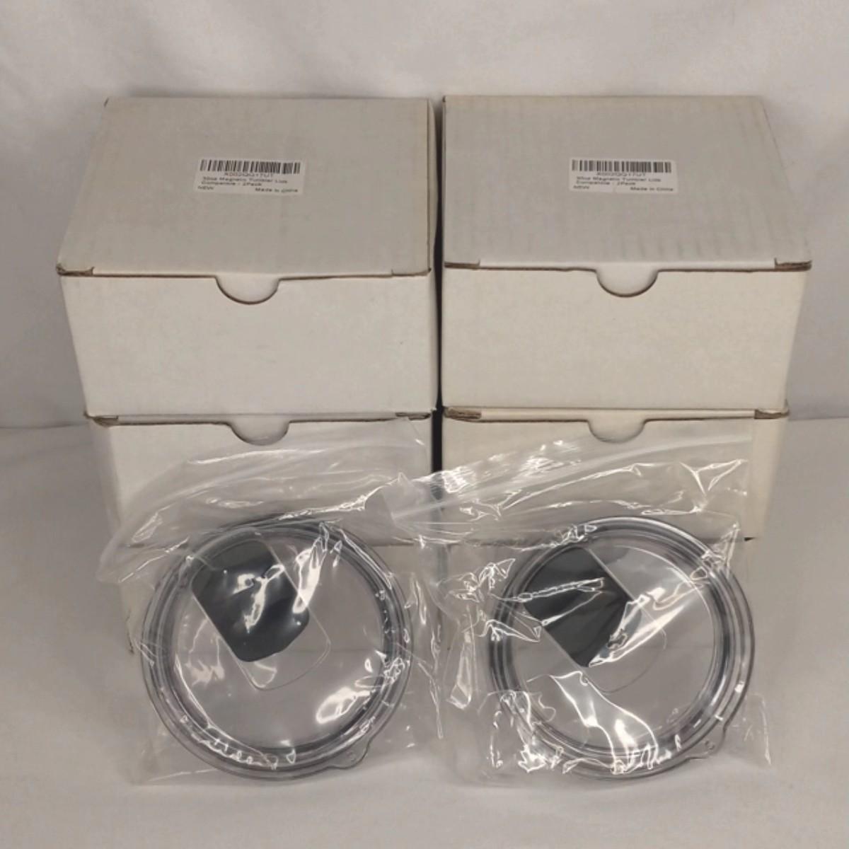 This is a lot of 14 brand new 30oz. tumbler replacement lids with a sip through design. Each lid features a rubber gasket to ensure the tumbler is leak free and the lid has a sliding closure to stop spilling. The lids have a diameter of approximately 3-3/4". Each lid is sealed in a plastic bag. You will receive 7 boxes, each box contains 2 tumbler lids for a total of 14 lids.