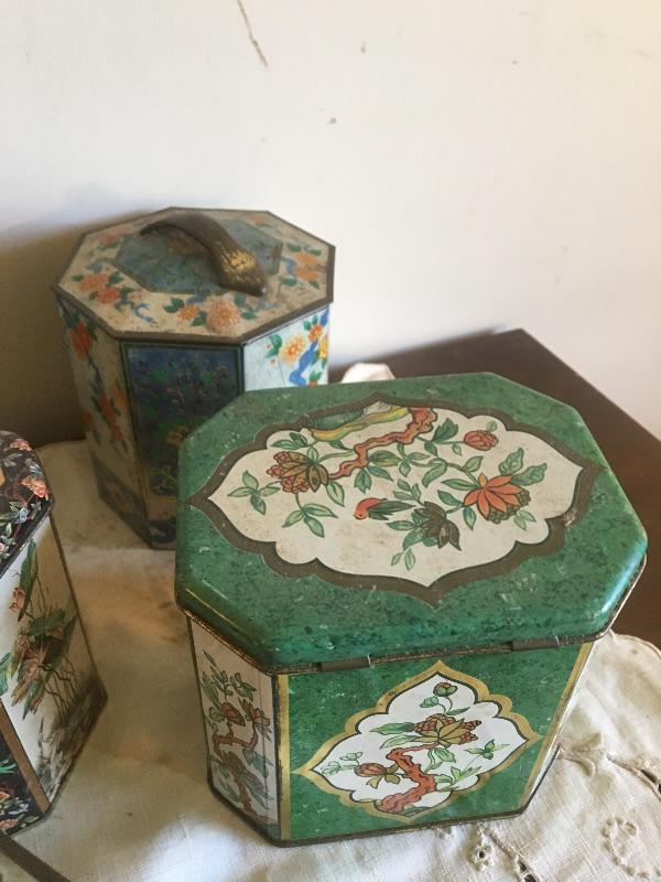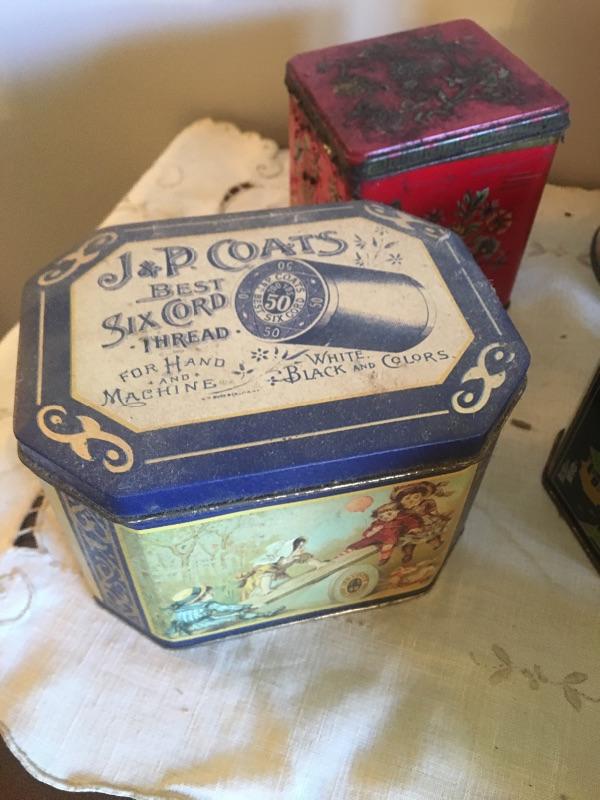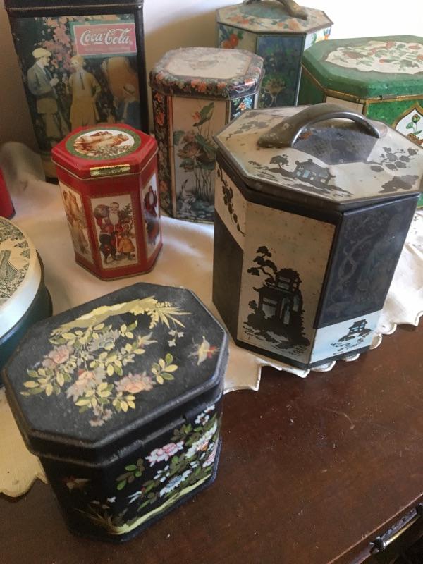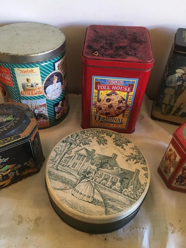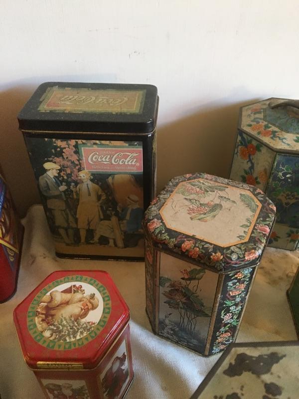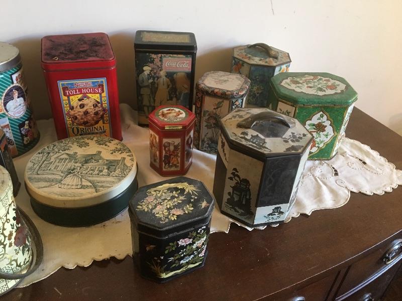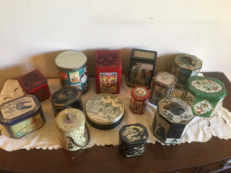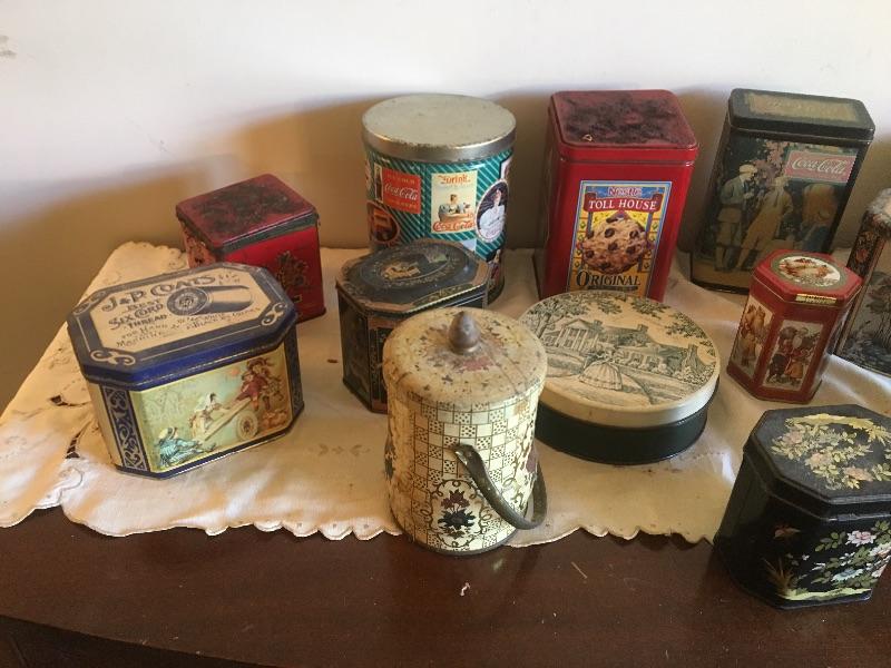 Lot of 14 Vintage Tins with Contents including old Playing Cards