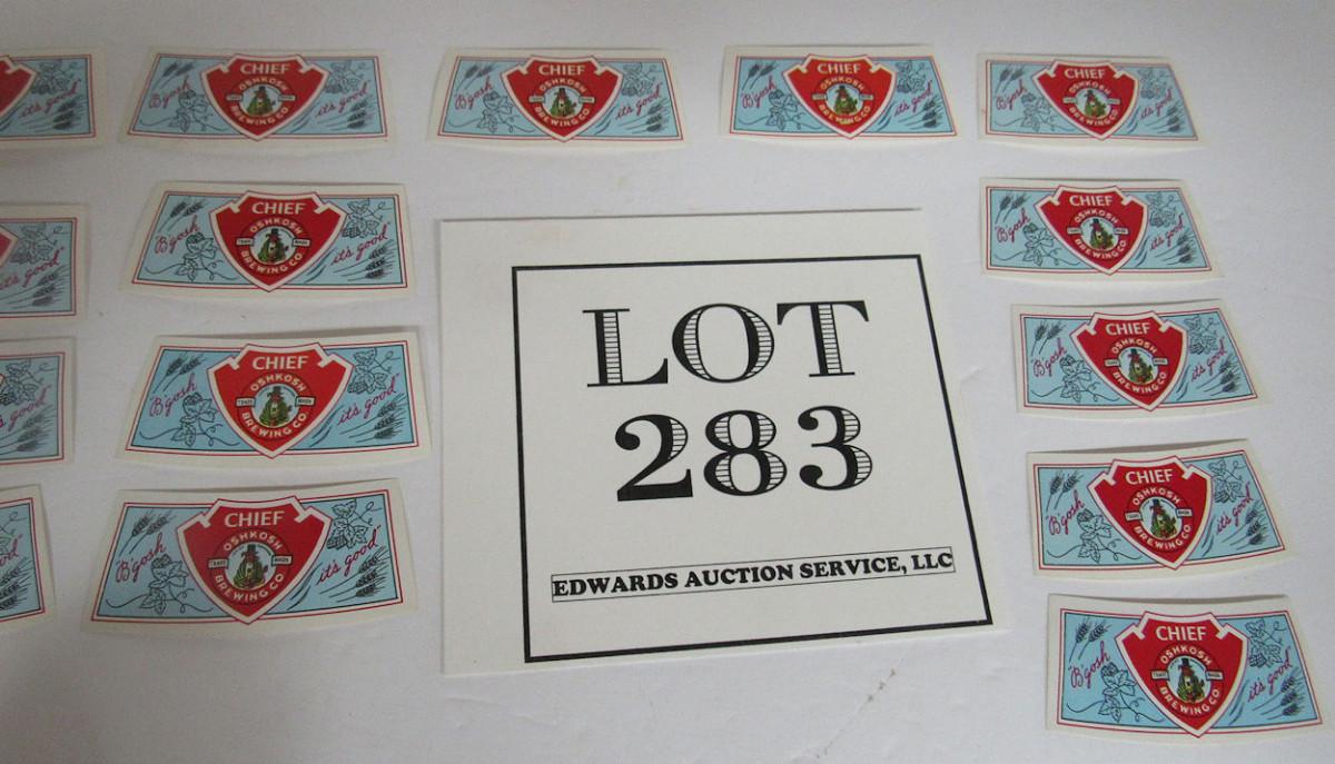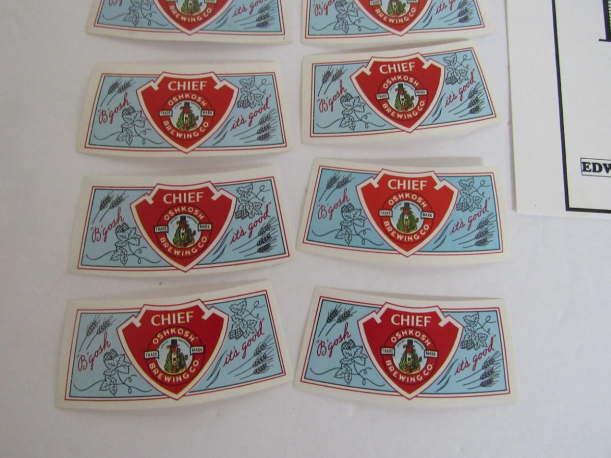 Lot of 15 Old Chief Oshkosh Beer Bottle Neck Labels, Nice