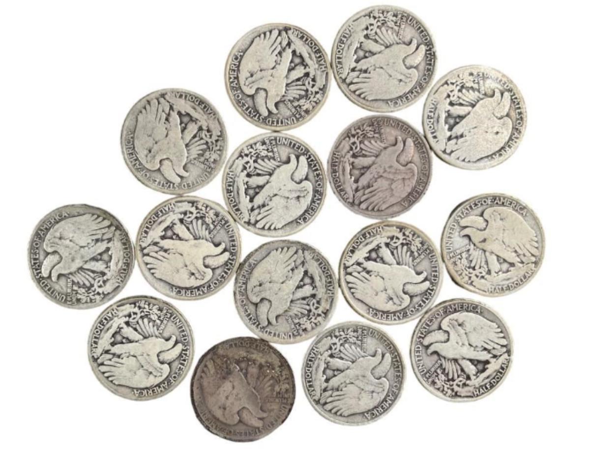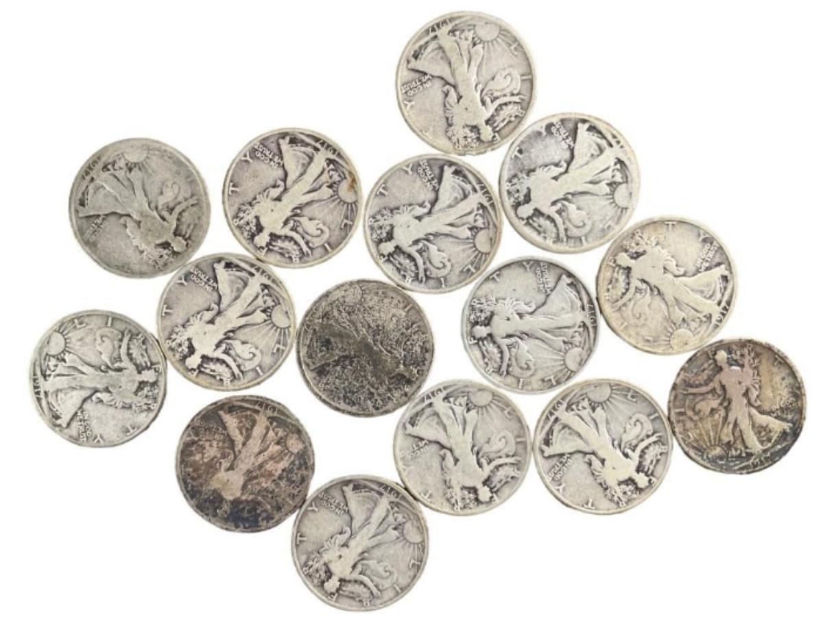 Lot of 15 Silver 1917 Walking Half Dollars - $7.50 Face Value