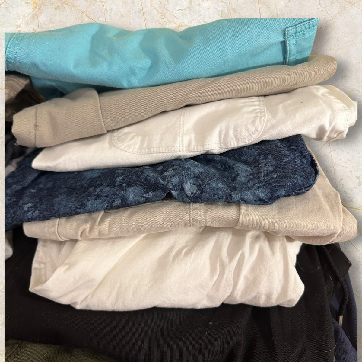 *The clothes in this estate were all owned and worn by the same lady. Almost every item is either size Medium, Large, 12 or 14. They have all been worn from little to a good bit. We have culled out the pieces that are stained, torn, or unwearable to the best of our ability. All clothes listed are wearable.