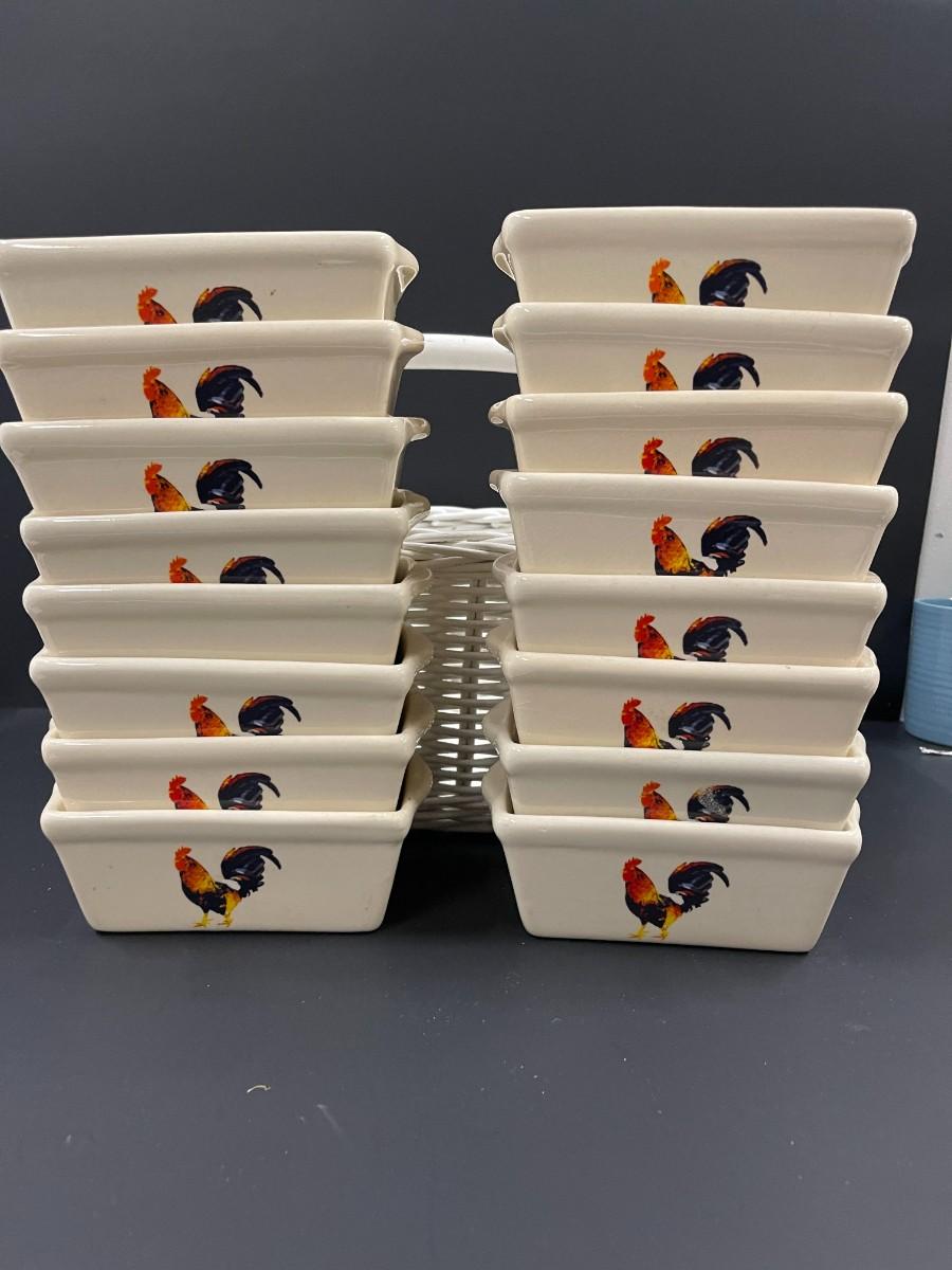 Lot of 16 small ceramic loaf pans. Each is 3 1/2" x 5 1/2". Never used.