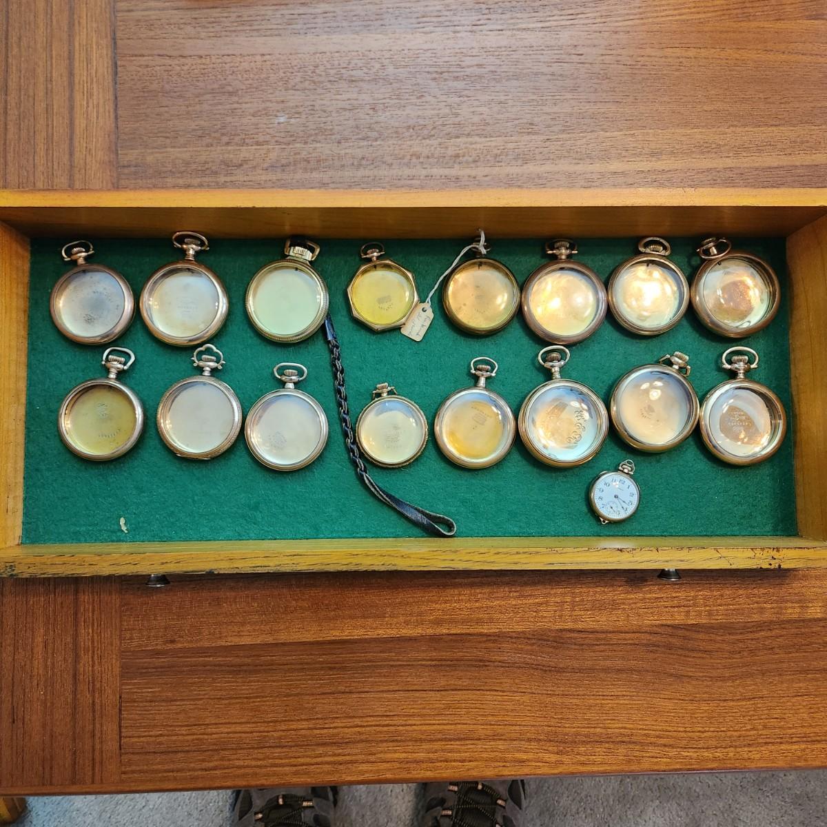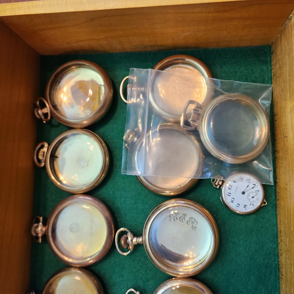 Large selection of Pocket Watches: (both complete & parts watches) – Horologists Cabinets, Tools, & Repair Equipment. Makers to include but not limited to: