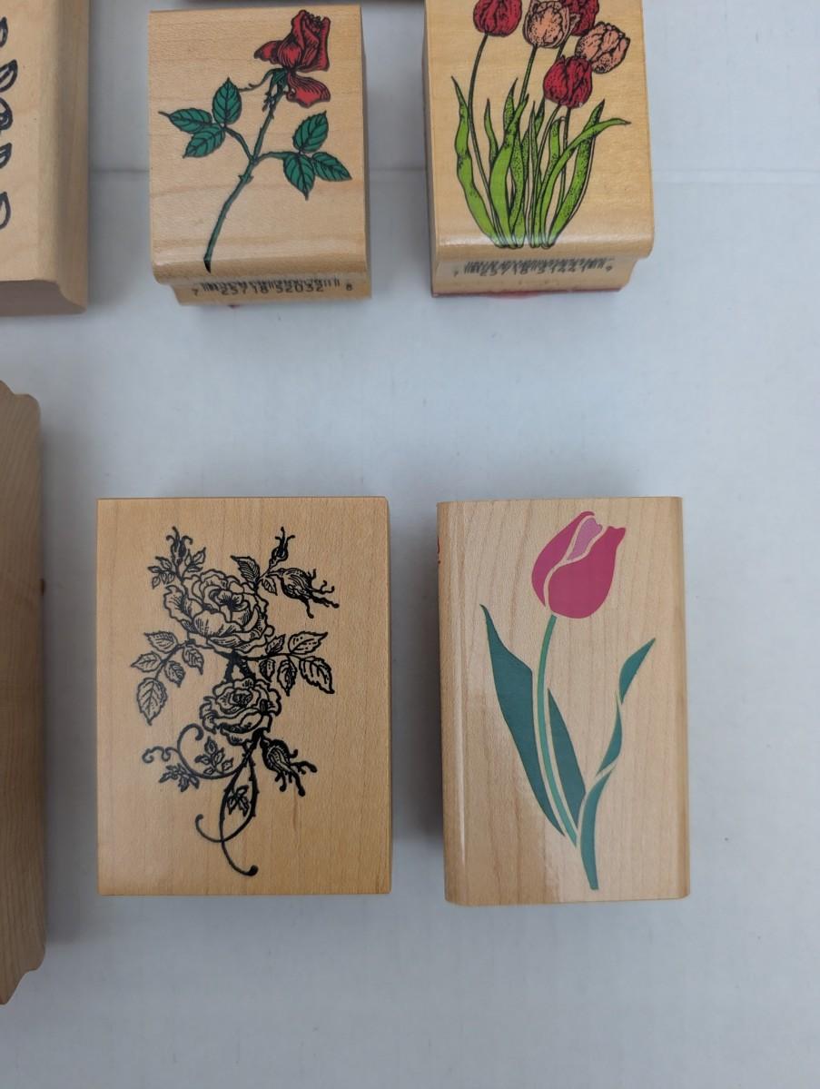 Lot of 17 Wooden Rubber Stamps Flowers Garden Sunflowers Tulips Roses Crafting