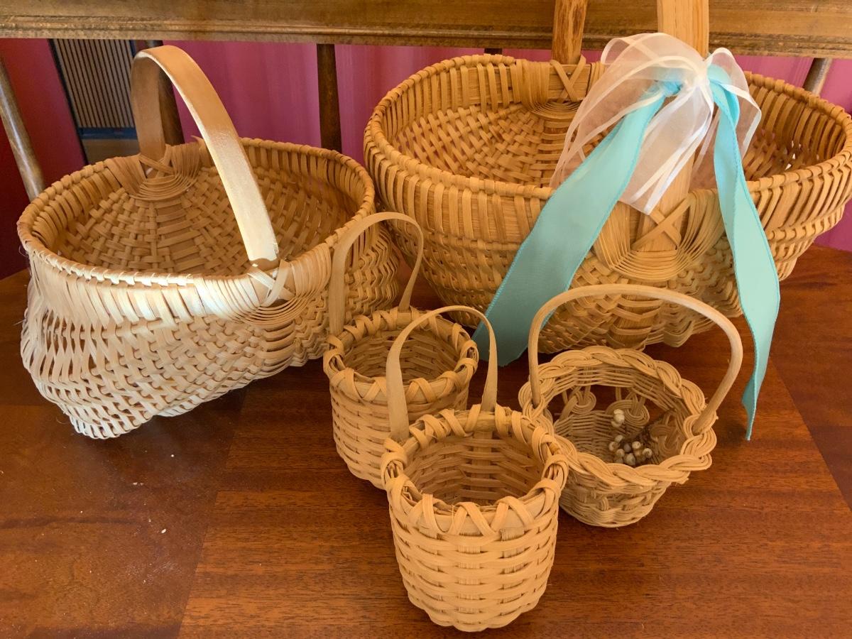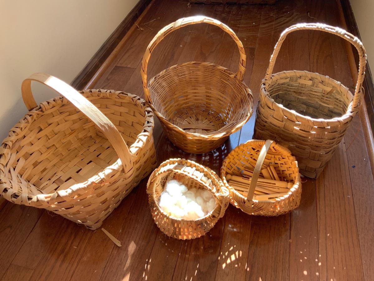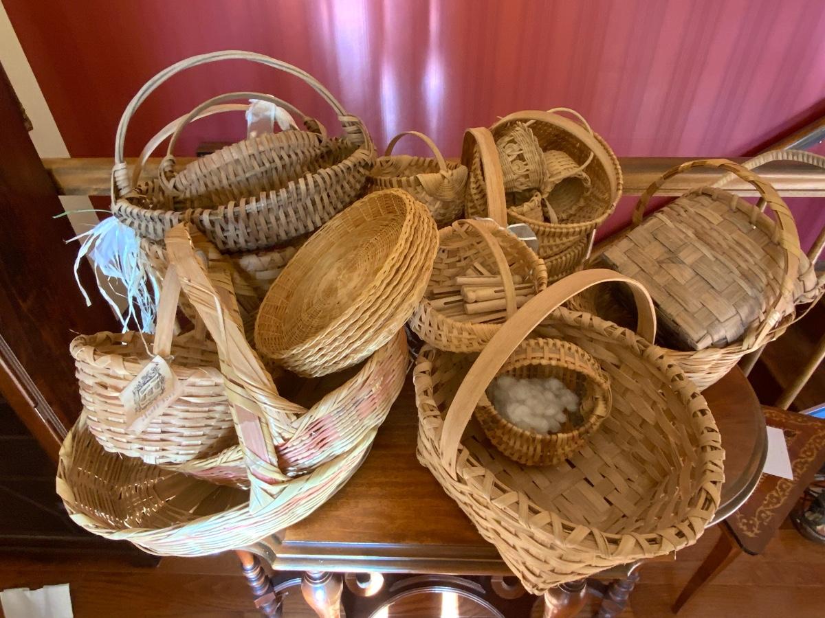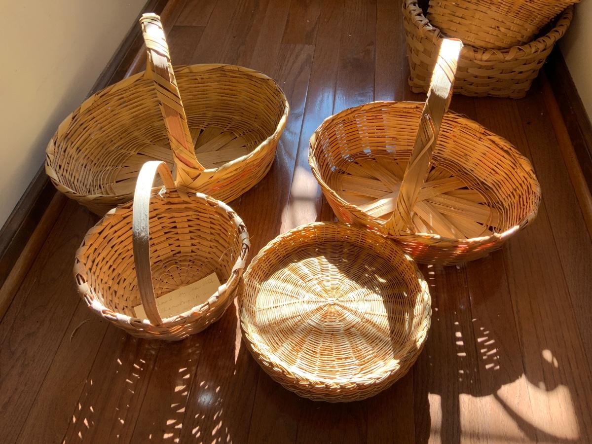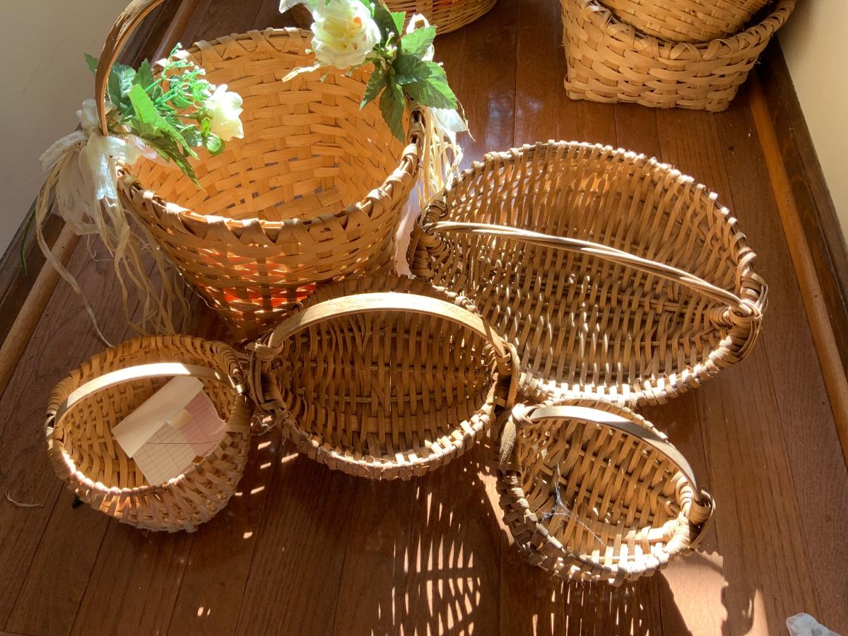 Lot of 18 Baskets plus Wicker Paper Plate Holders. Baskets include Melon and Buttocks Baskets to name a few. If Buyer chooses shipping, please note this is a rather bulky lot.