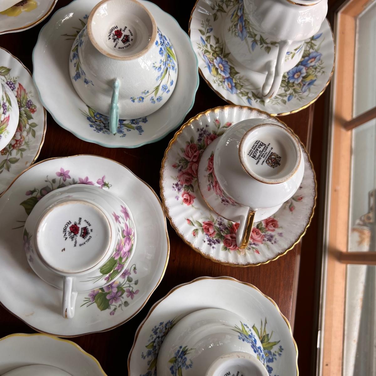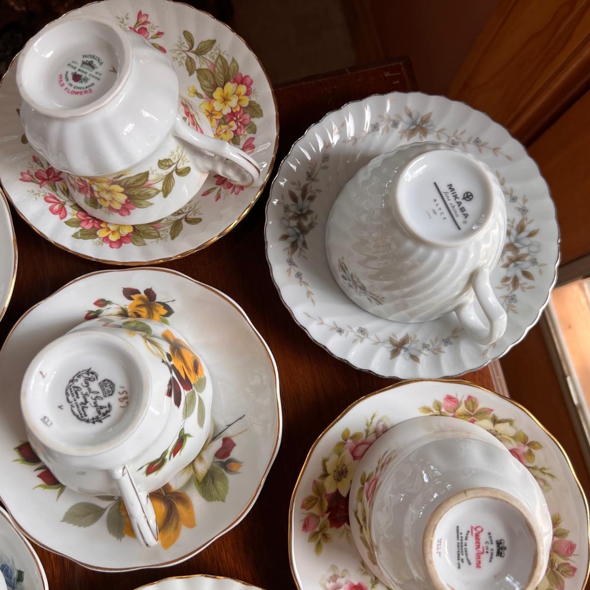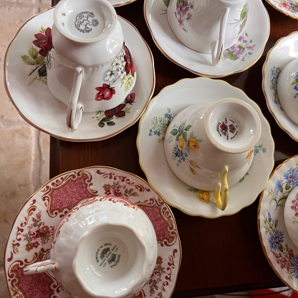 Excellent condition. Beautiful collection. Designers - Rosina, Royal Albert, Royal Dover, Mikasa, Queen Anne, Paragon. Mix patterns