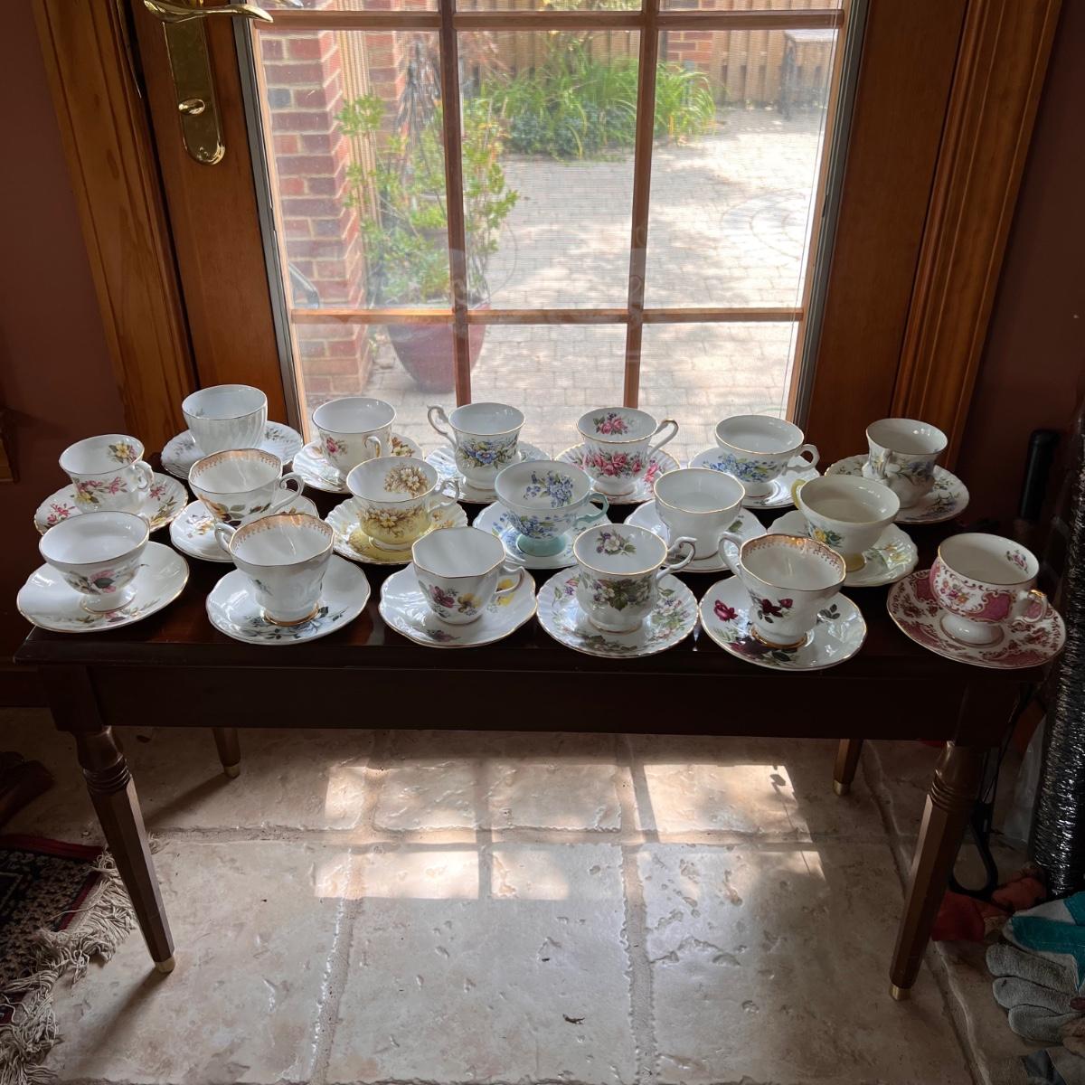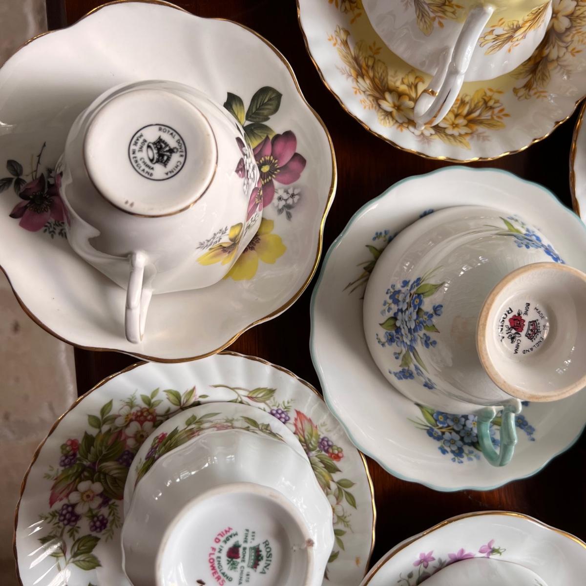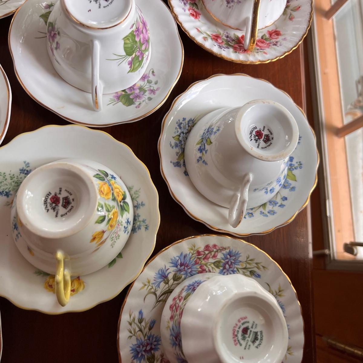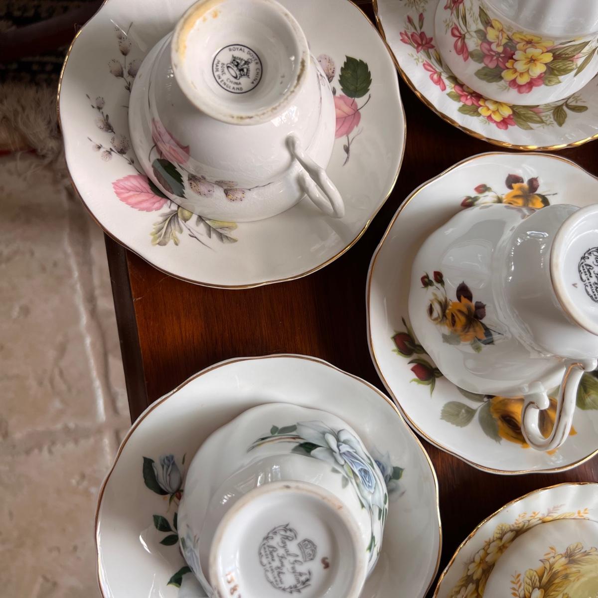 Excellent condition. Beautiful collection. Designers - Rosina, Royal Albert, Royal Dover, Mikasa, Queen Anne, Paragon. Mix patterns