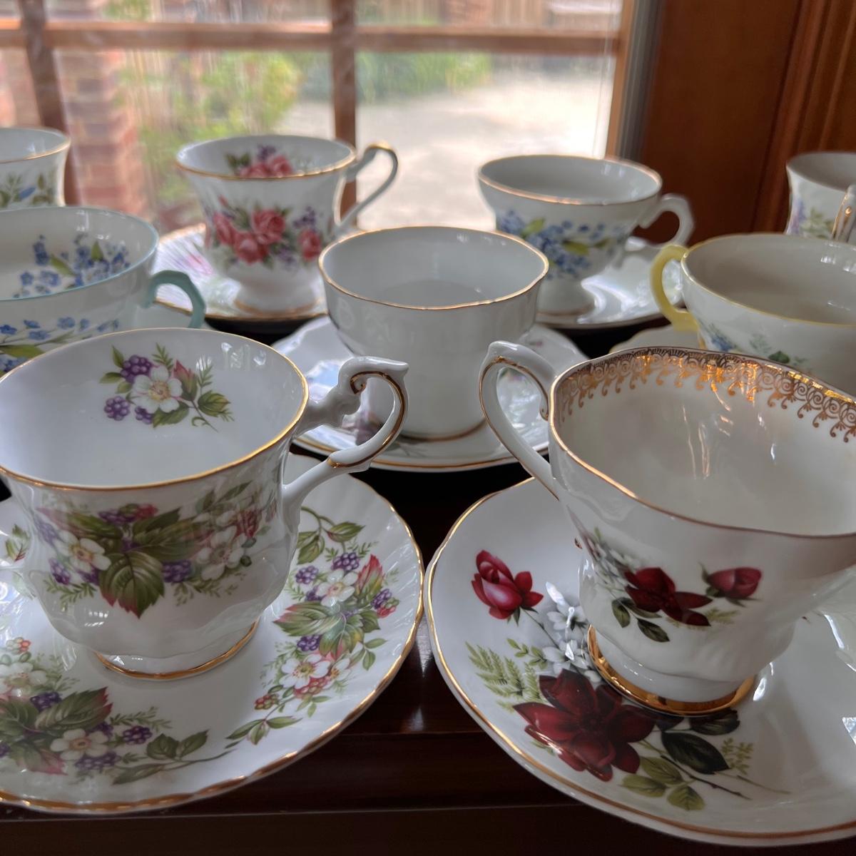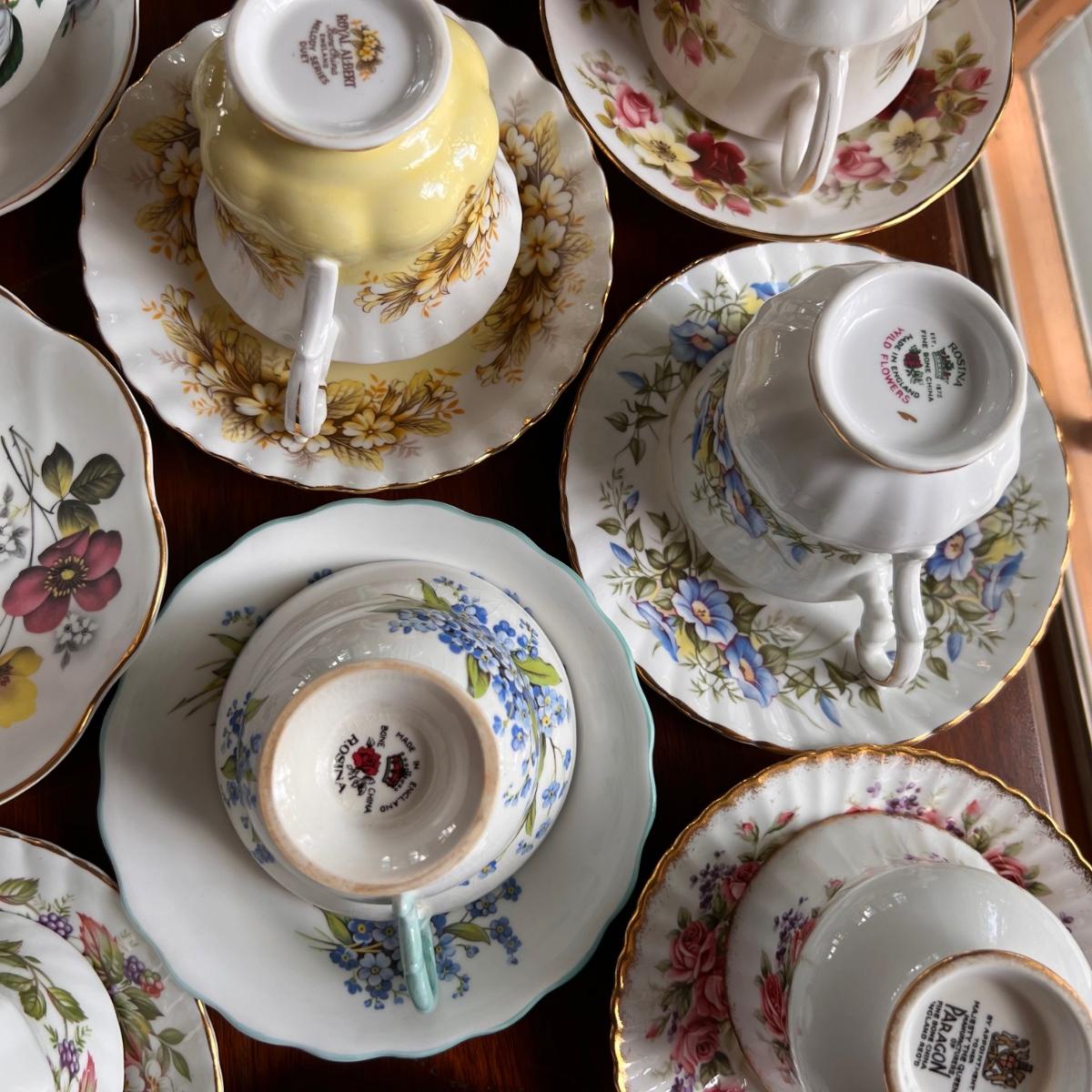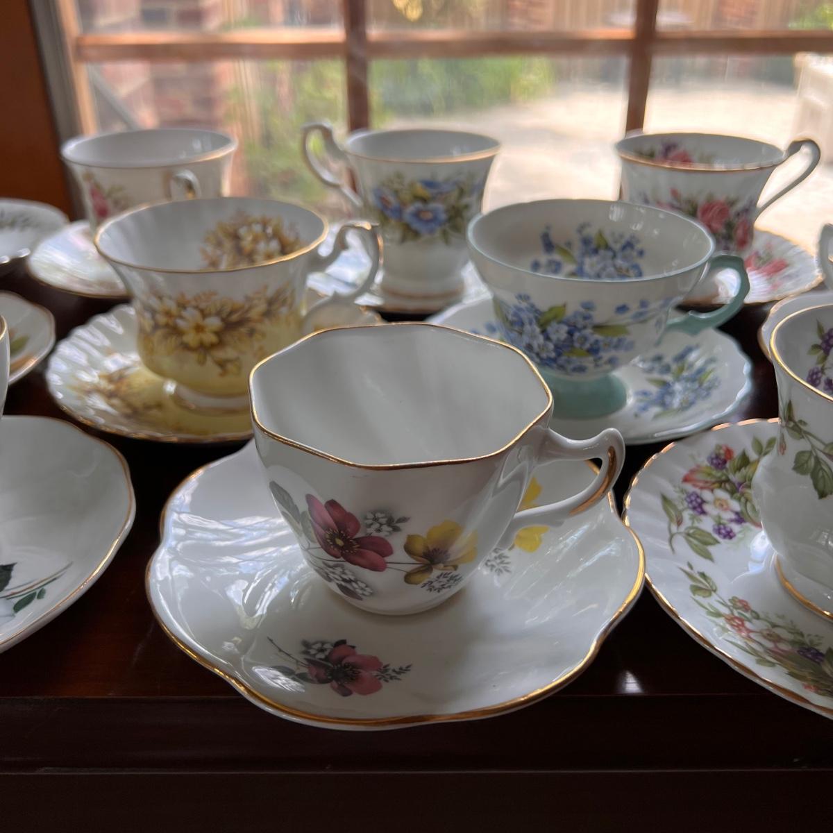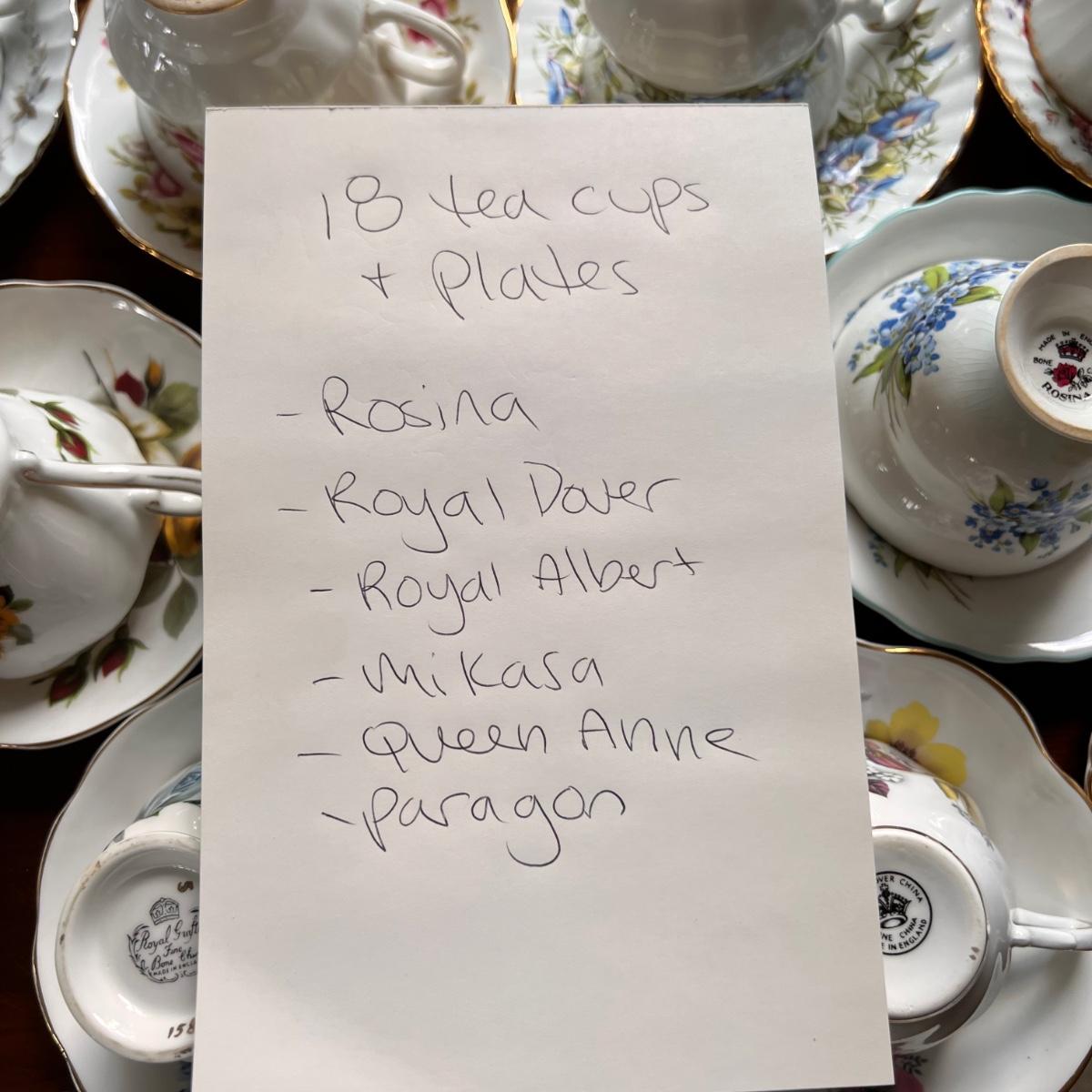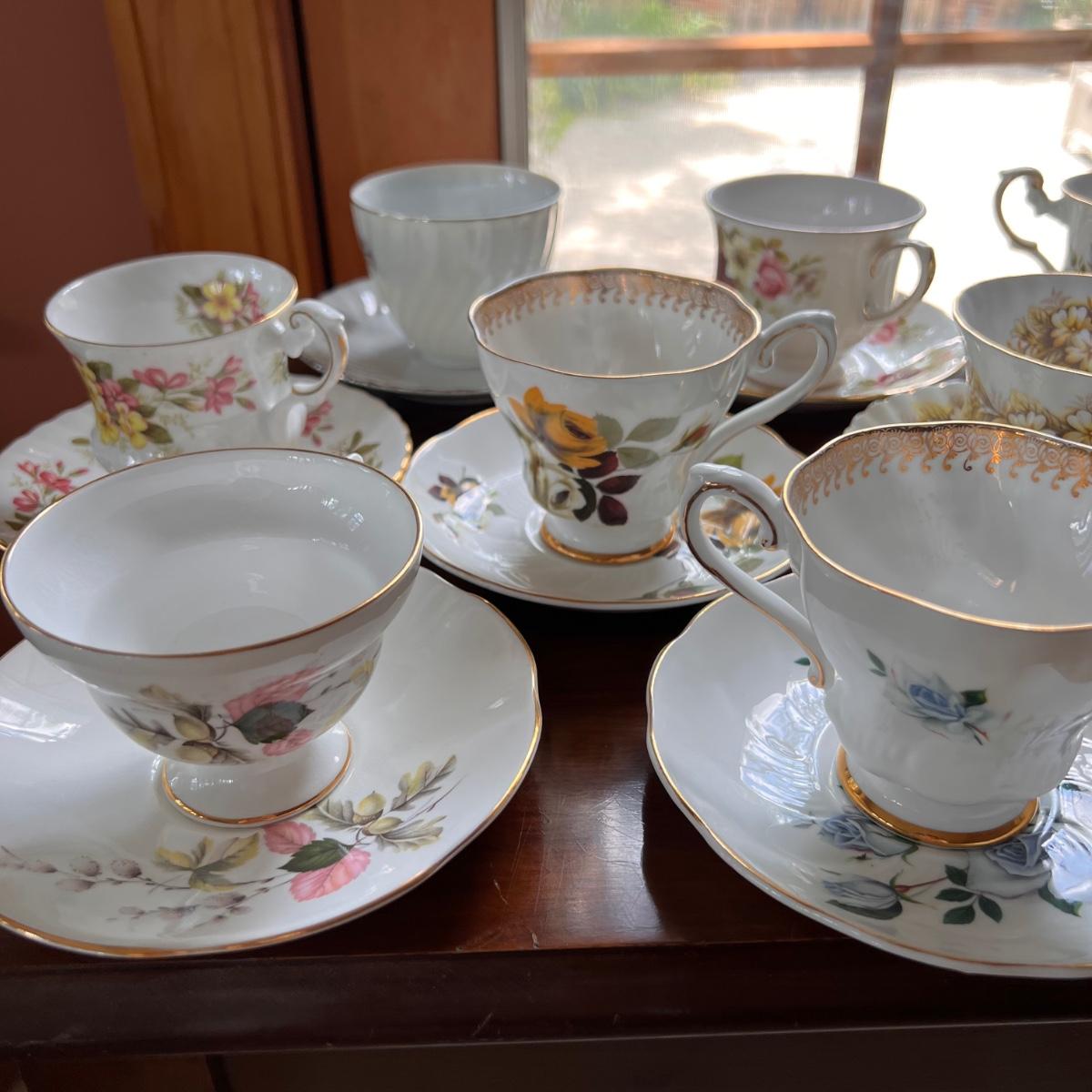 Lot of 18 Designer Vintage Tea Cups w Plates