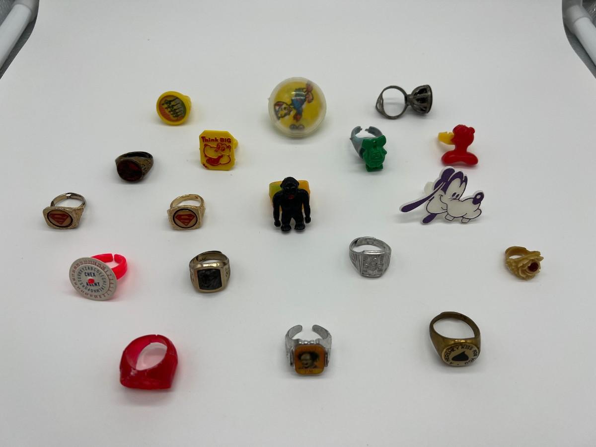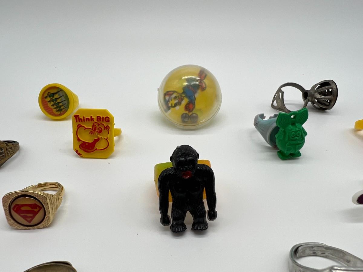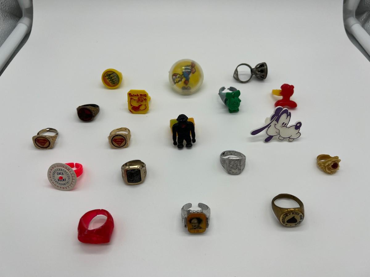 Lot of 18 Kids Toy Rings from the 1960s and 1970s