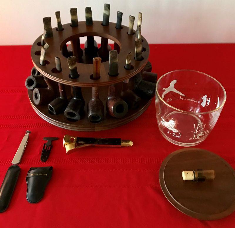 Lot of 18 Vintage Pipes With Wooden Stand