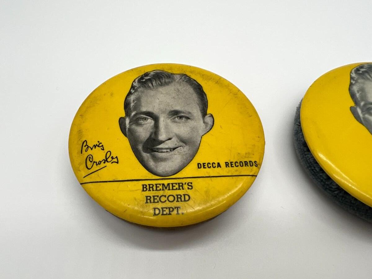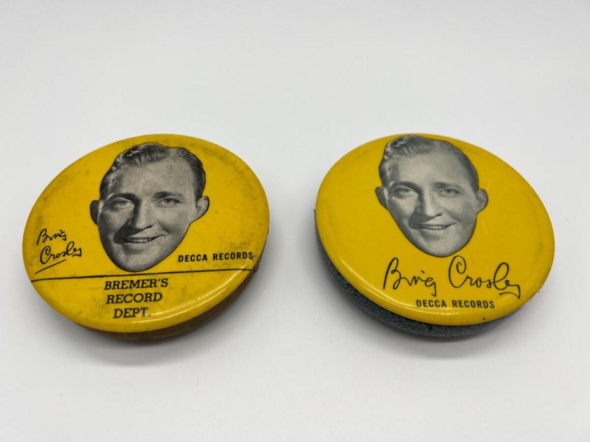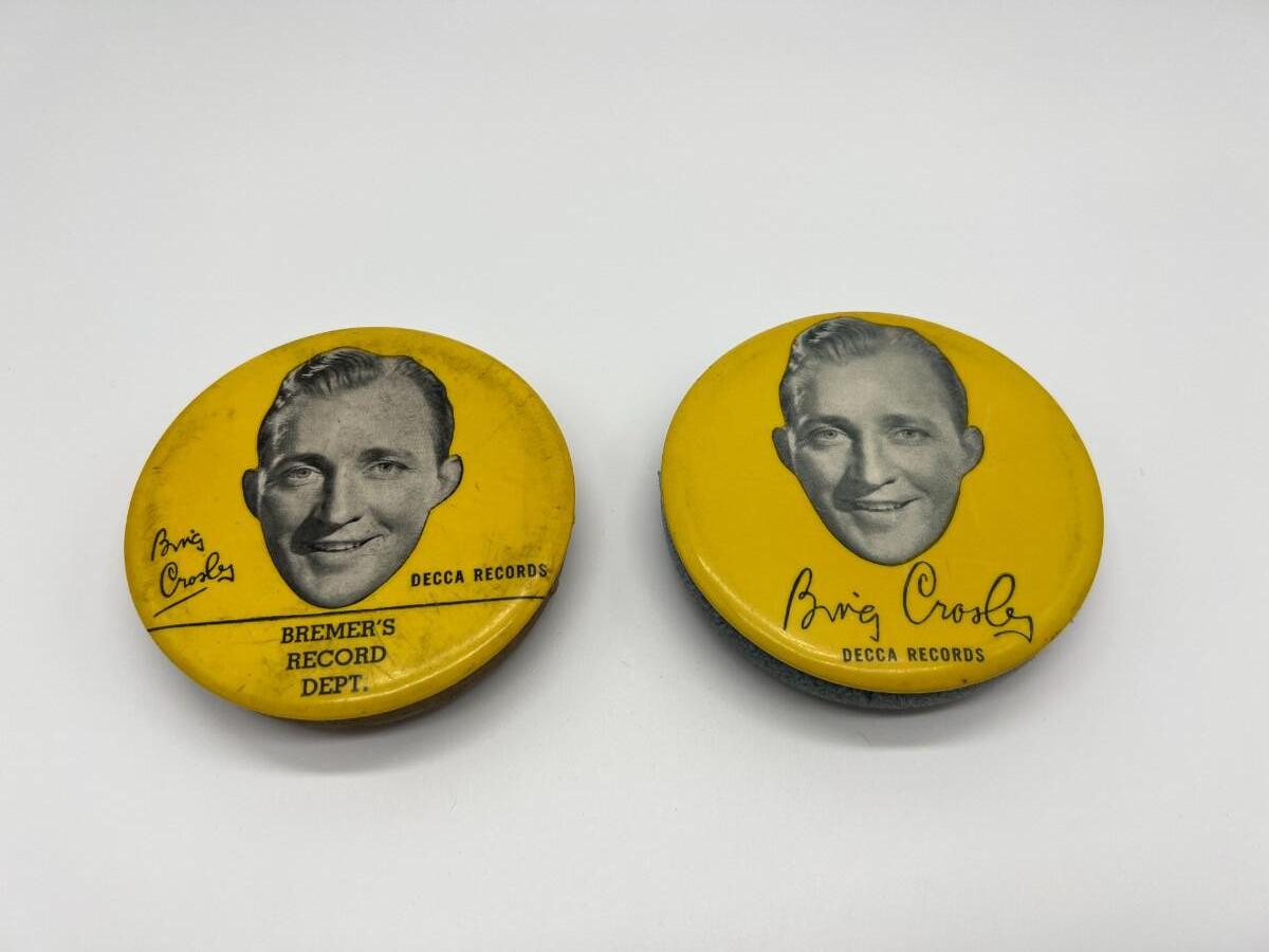 Lot of 2 1940 Bing Crosby Record Cleaners. Both have a yellow background with a portrait of Bing, and one is from Bremer's Record Dept. Conditions are as shown.