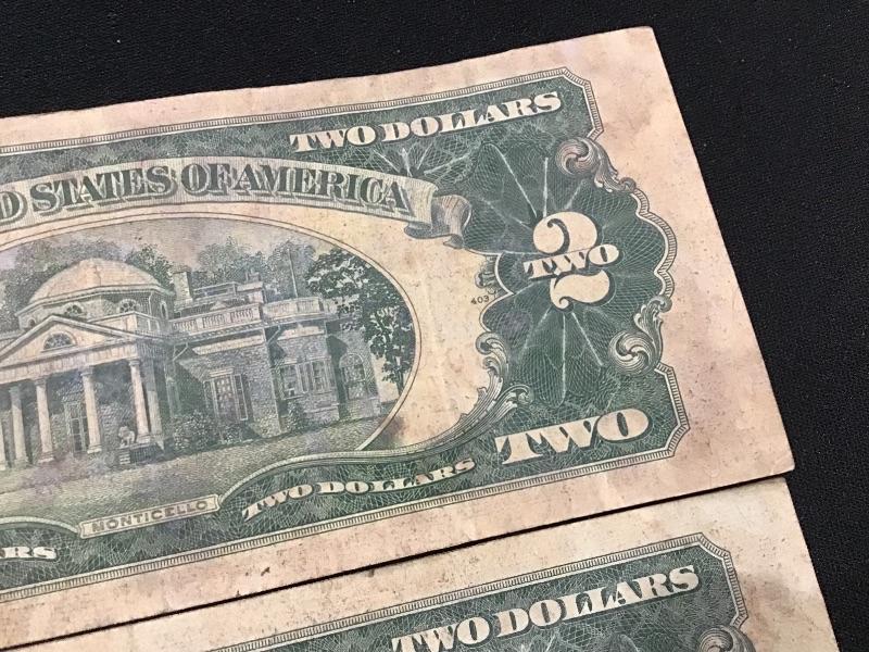 Lot of 2 1953 $1 Two Dollar Bill - Red Seal