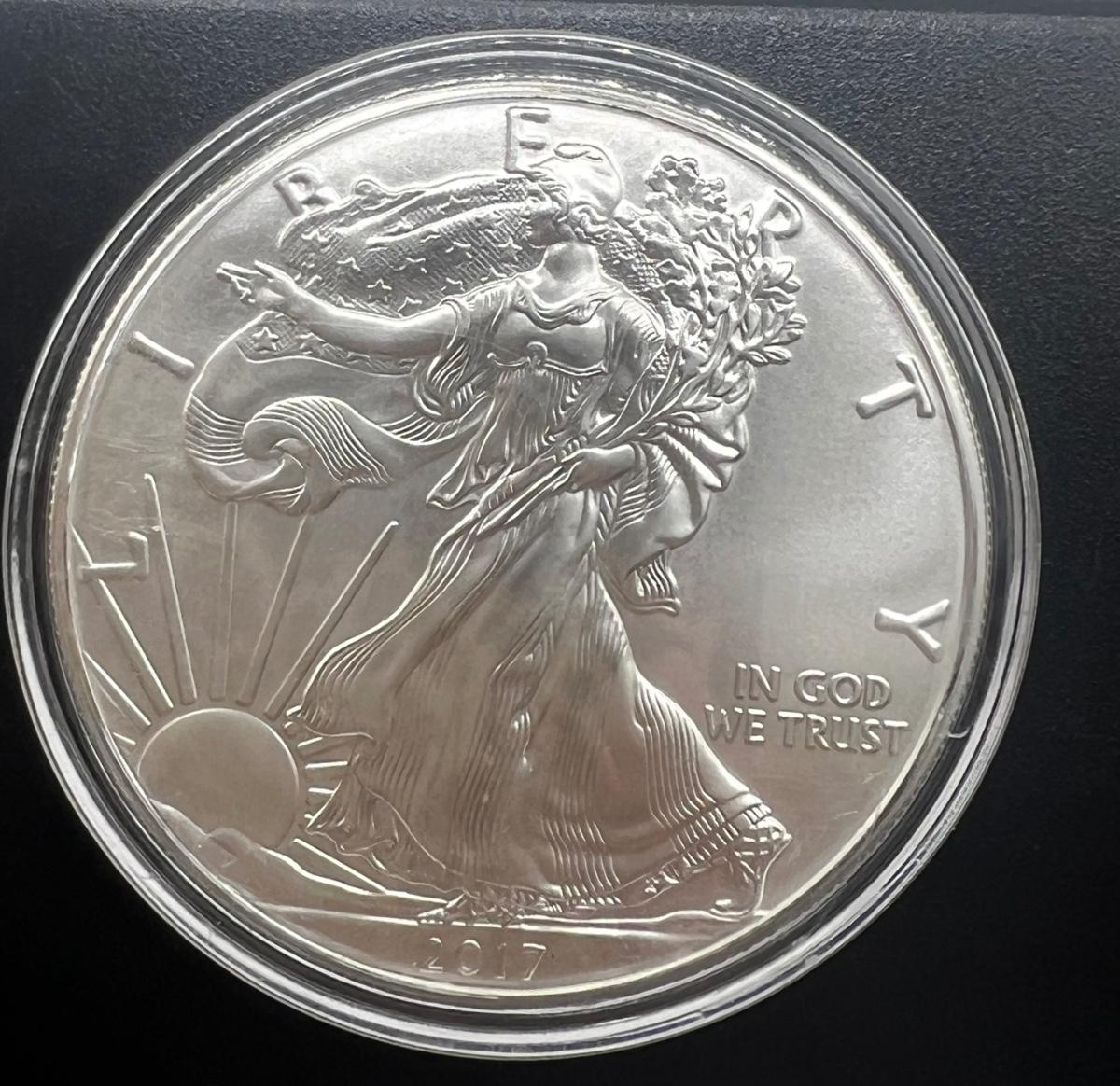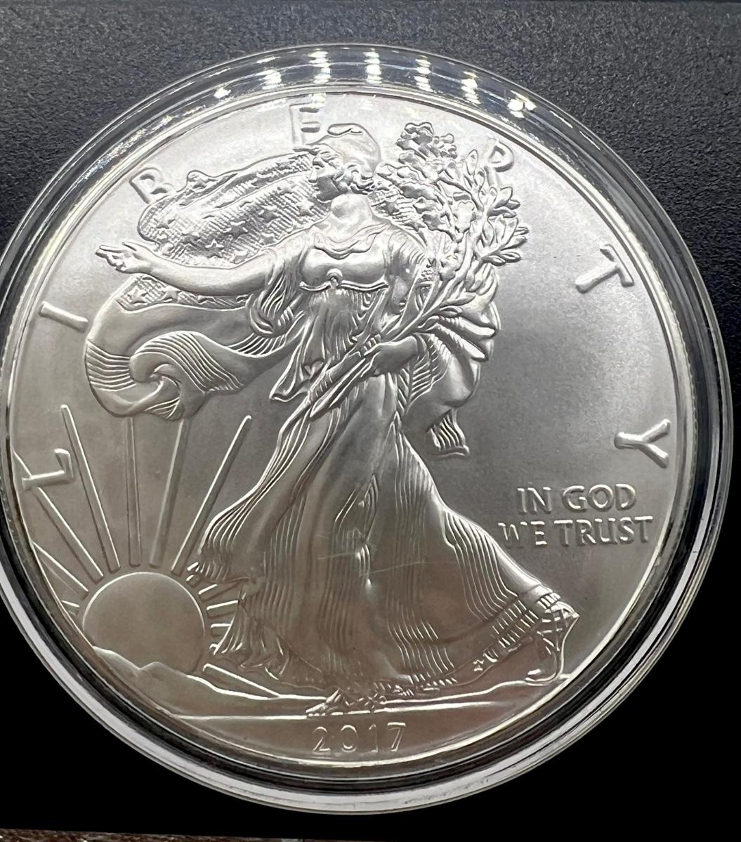 You are bidding on TWO COINS, In cases, 2017 1 oz American Silver Eagle Coins. See pictures for condition of coins.