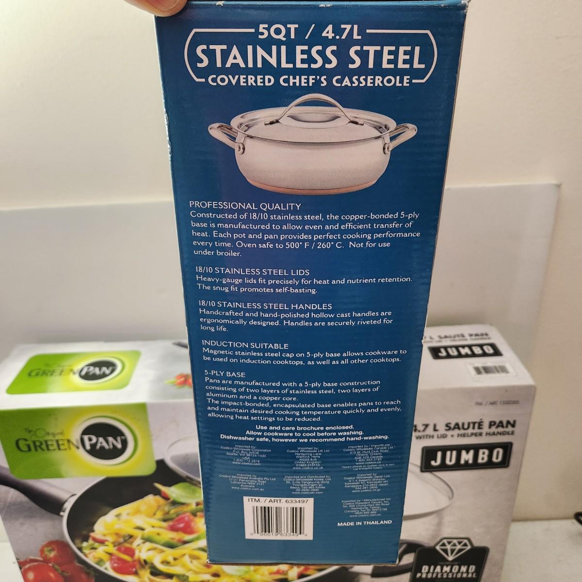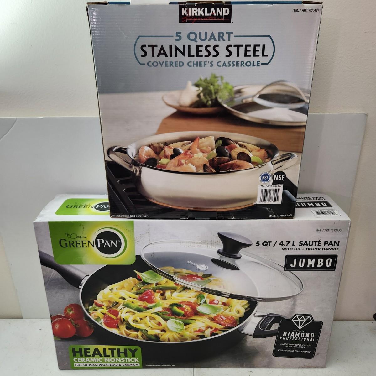 lot of 2 5 Qt Stainless steel Casserole & Green Pan 5 qt Sauté Pan New in box