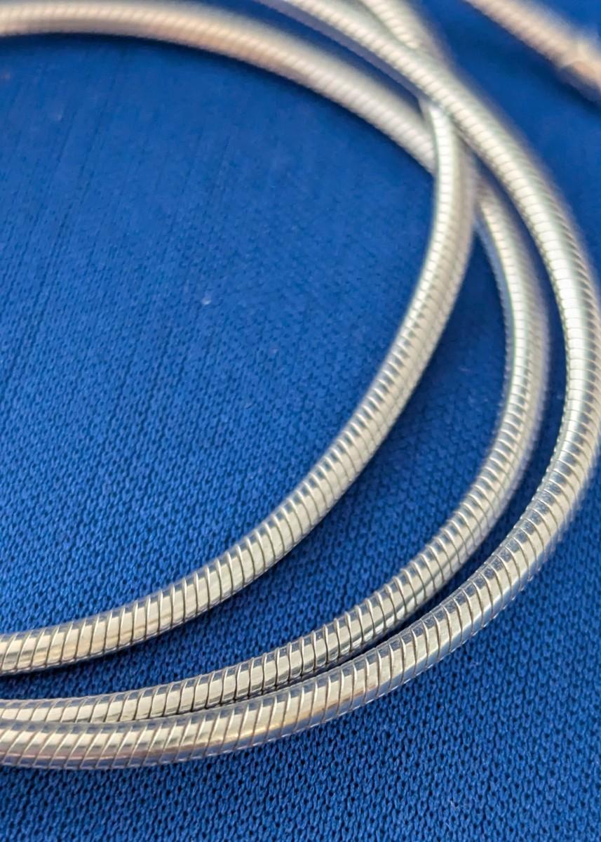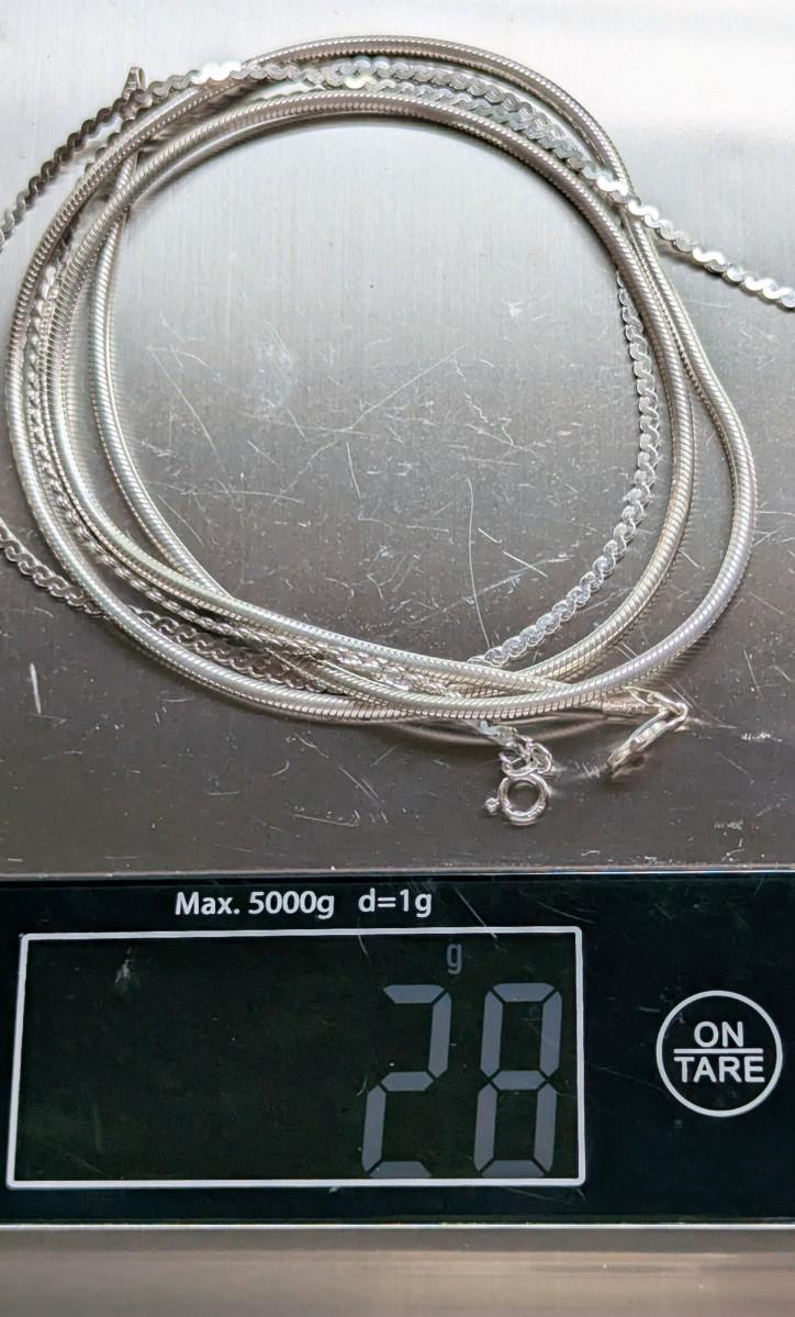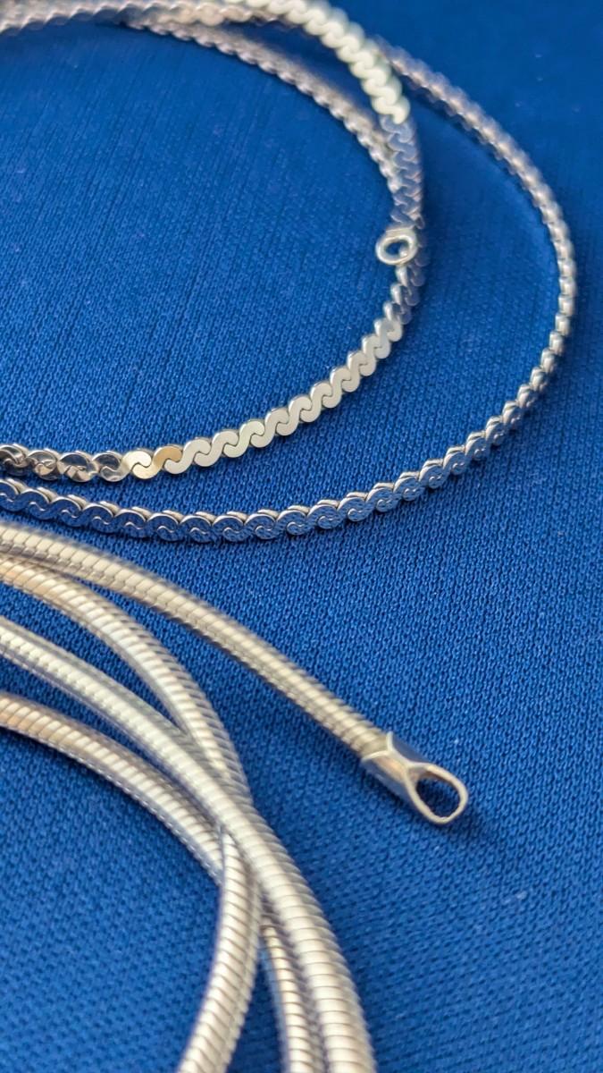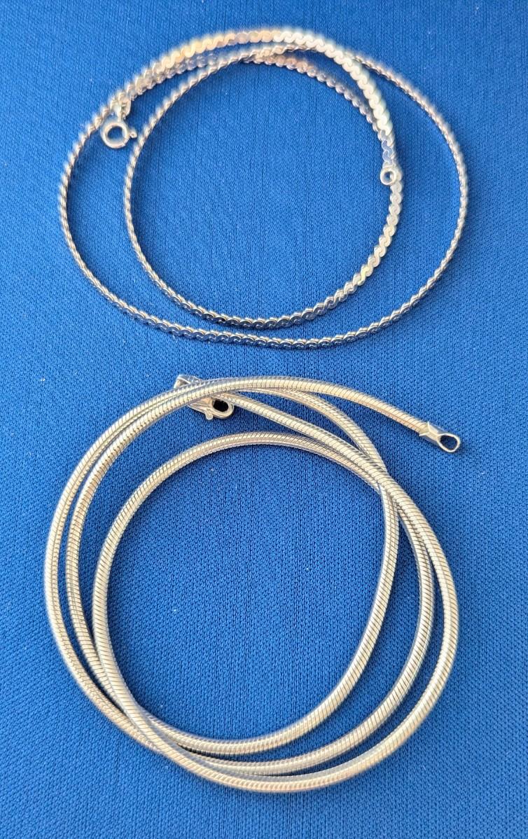 Lot of 2 925 sterling silver chains 18" serpentine w/ spring ring closure, 24" snake w/ lobster claw closure