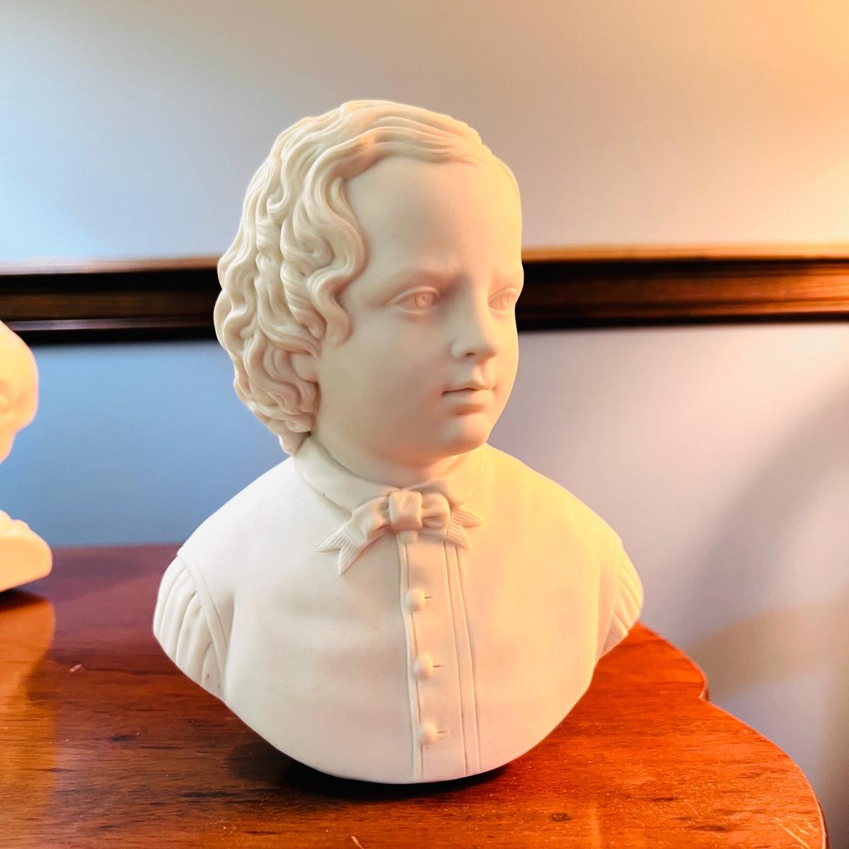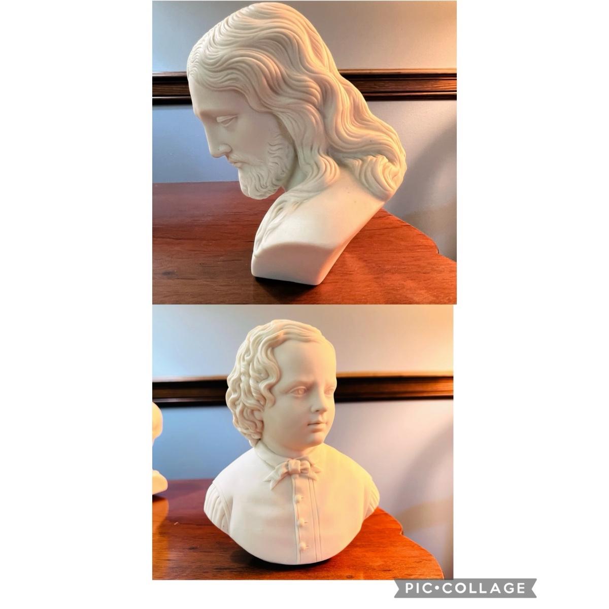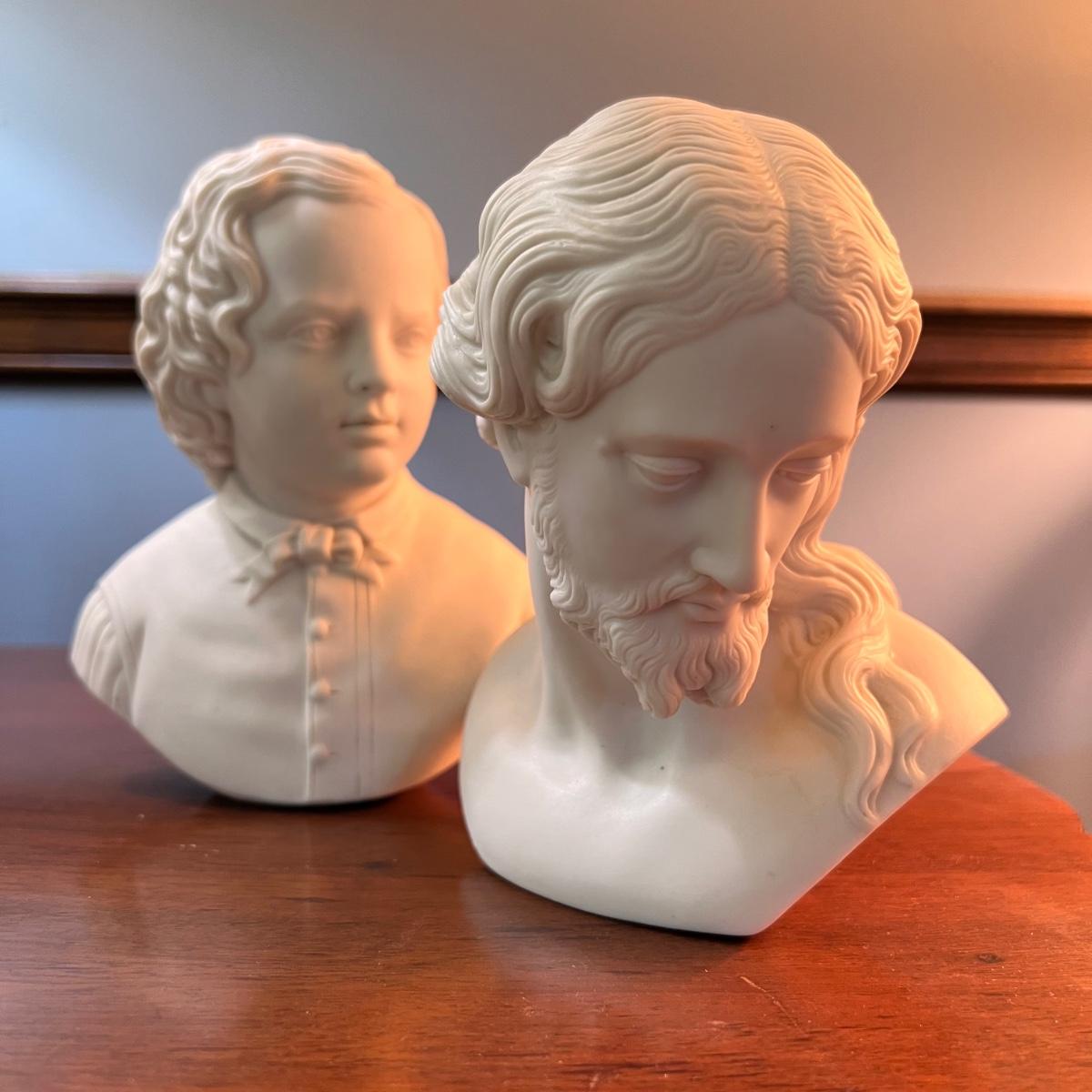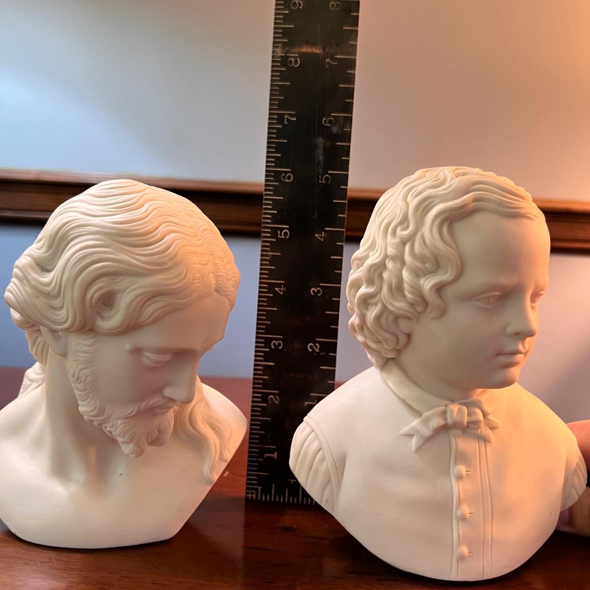 Amazing pair of antique Parian busts. Jesus Christ and young boy.