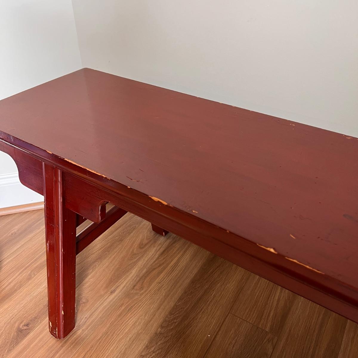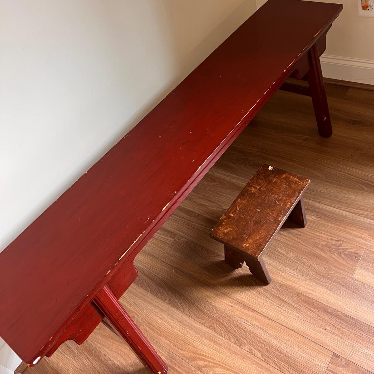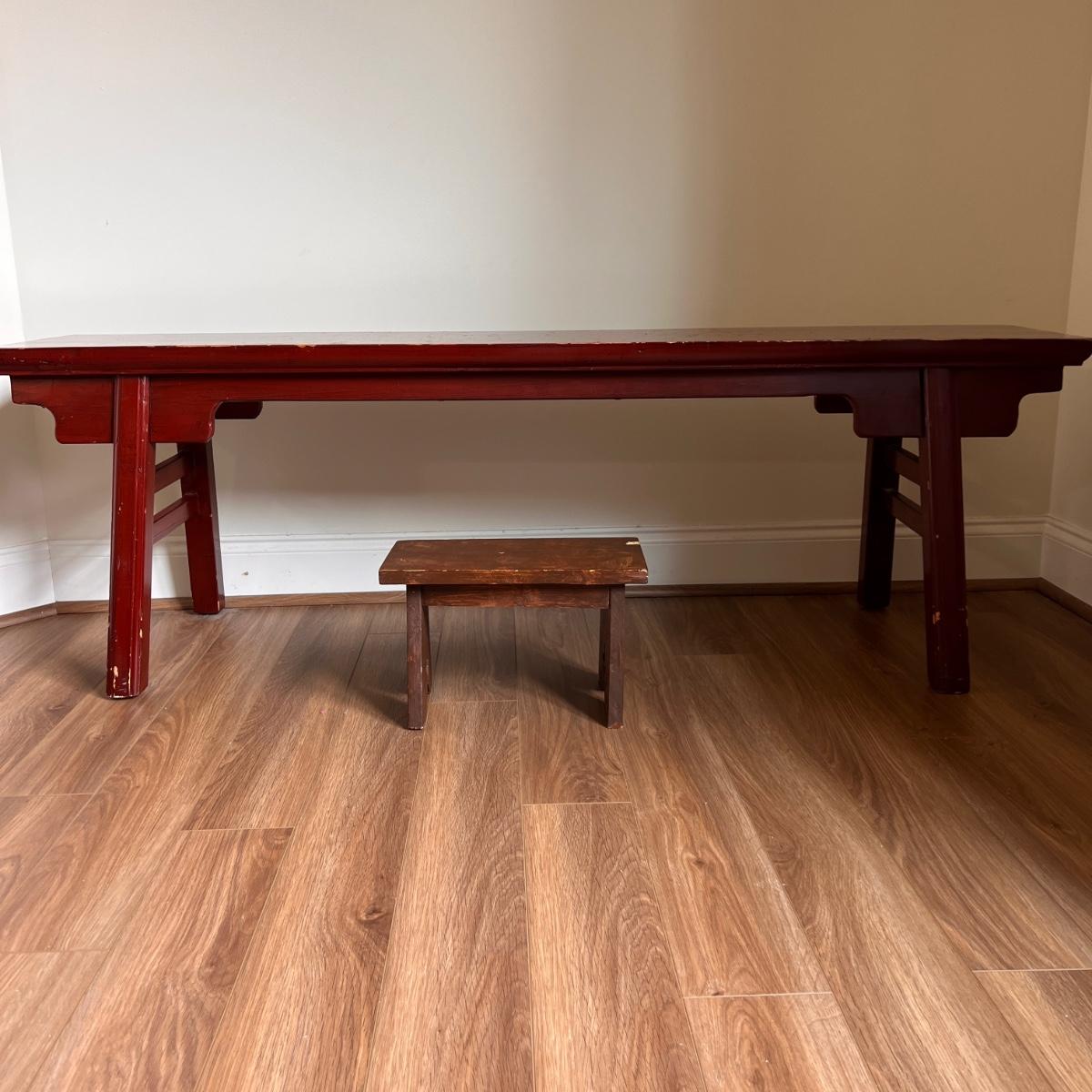 The larger bench is sturdy and solid. It does need a new paint job. The smaller one has a small chunk missing.