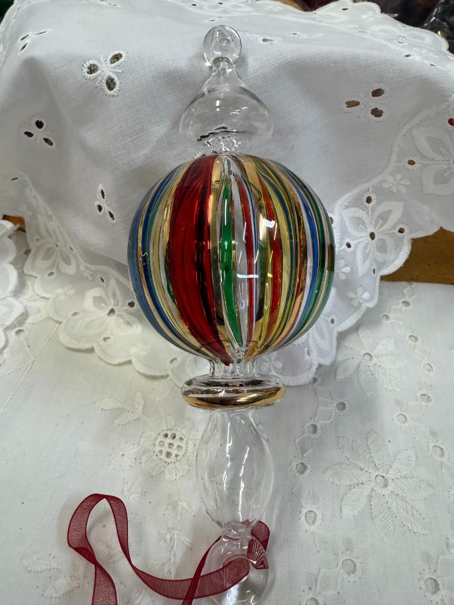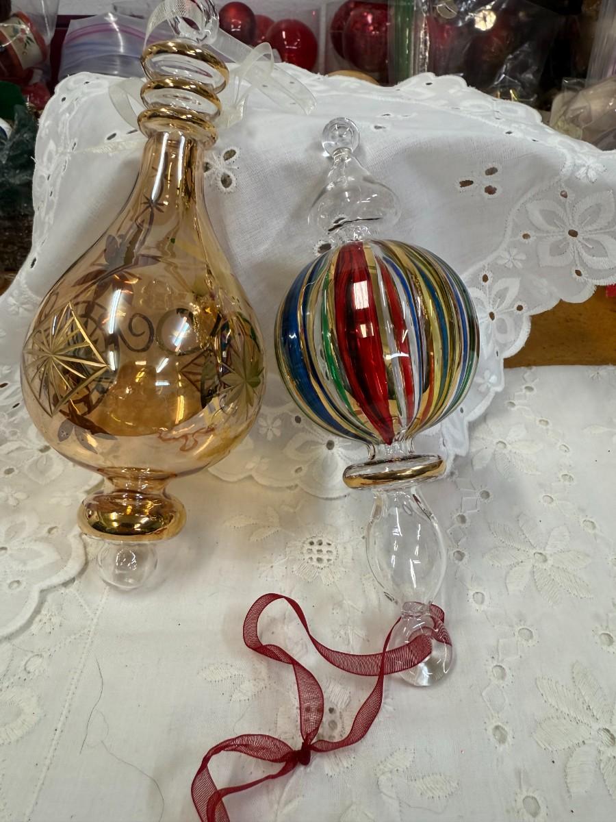 Add a touch of elegance to your holiday decor with this stunning lot of 2 blown art glass ornaments. Each piece is expertly crafted, showcasing vibrant colors and unique shapes that will capture the light beautifully.