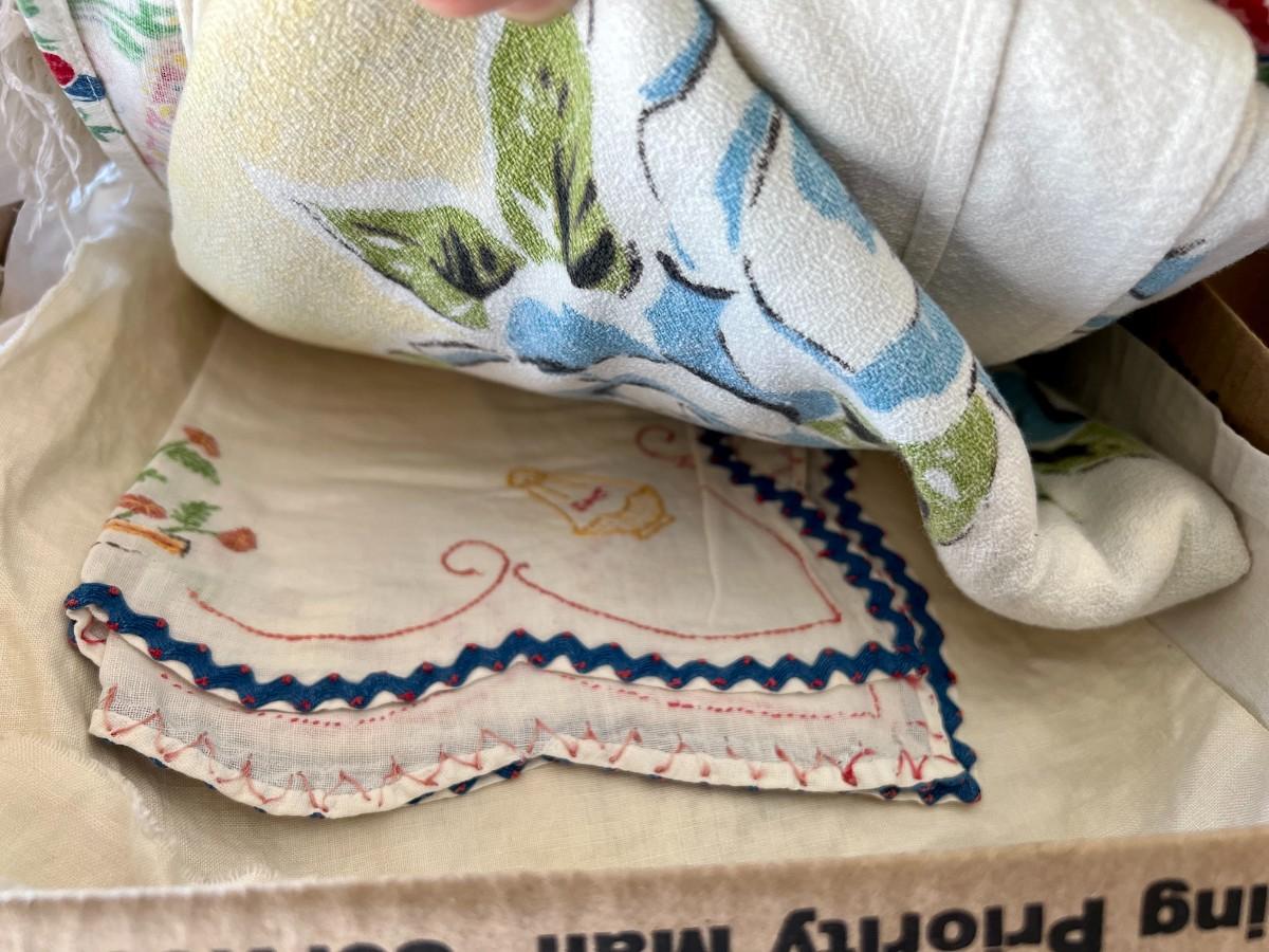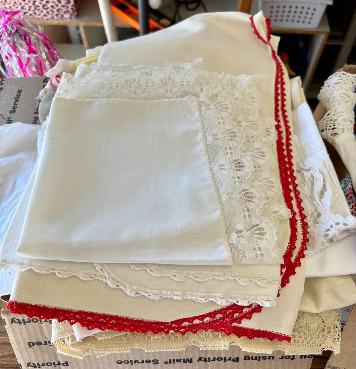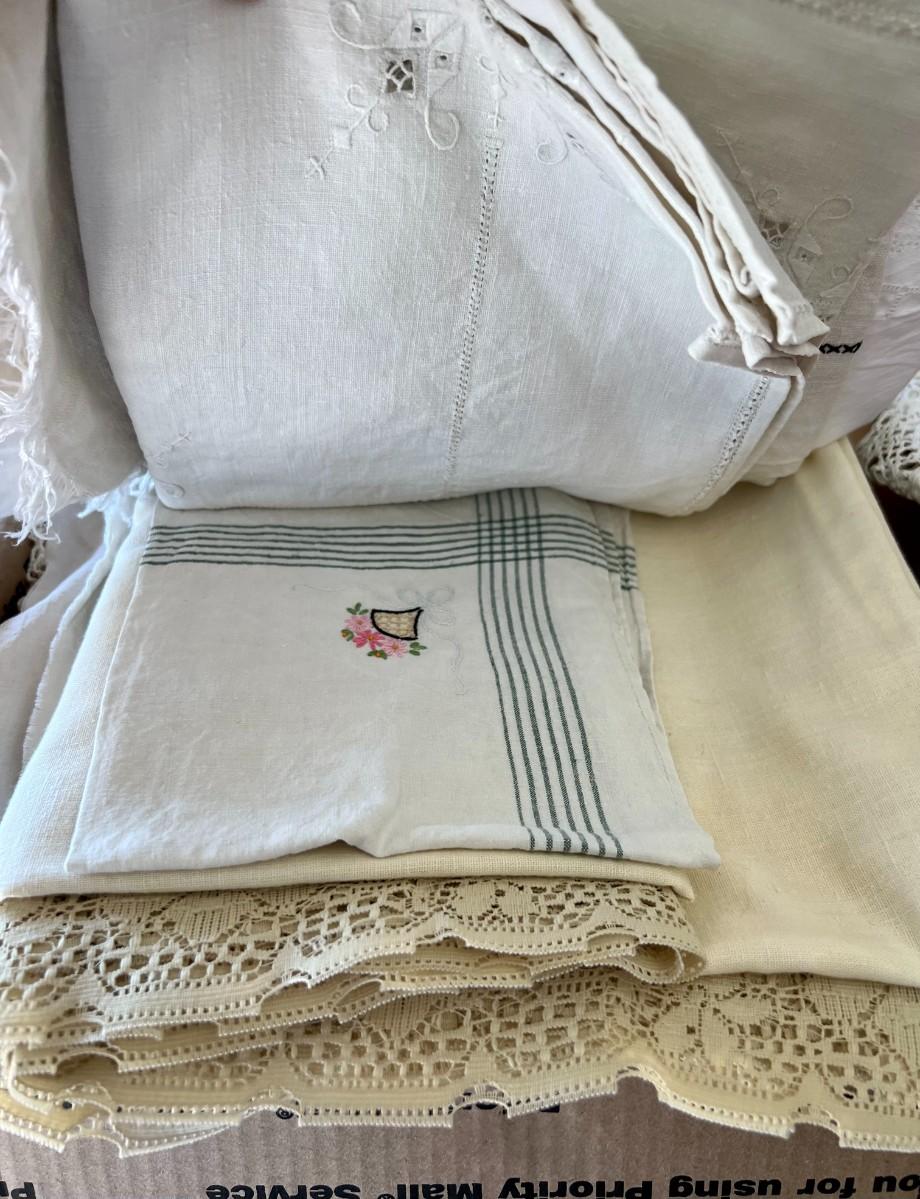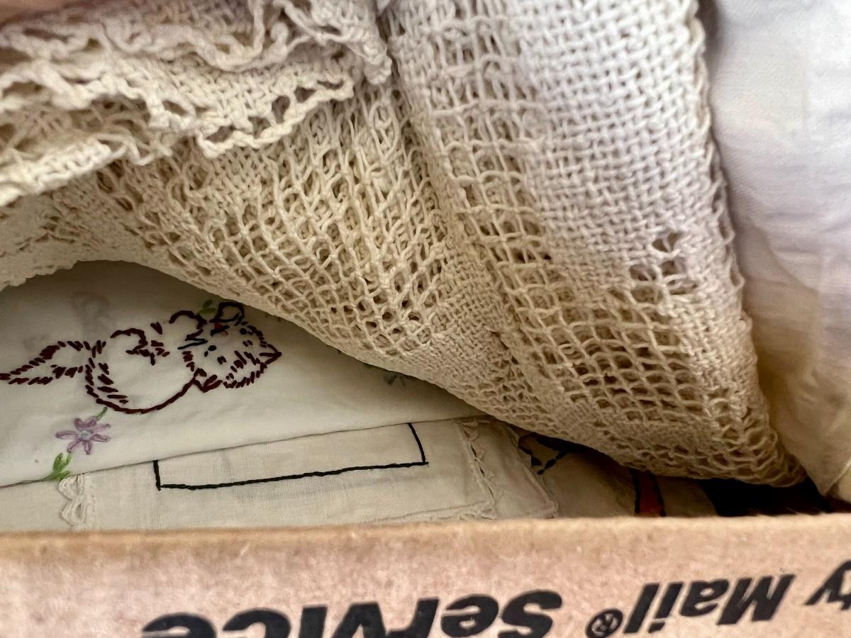 Lot of 2 Boxes of Miscellaneous Vintage Tablecloths, Table Runners and Napkins