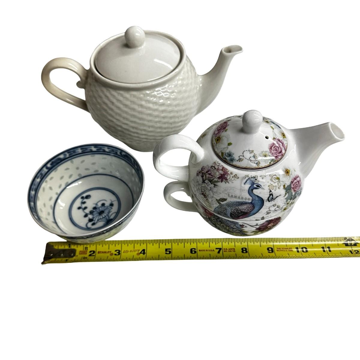 Lot of 2 Ceramic Tea Pitchers and a Small Bowl