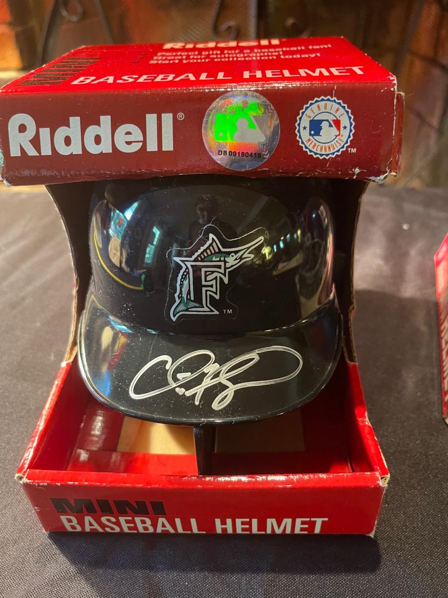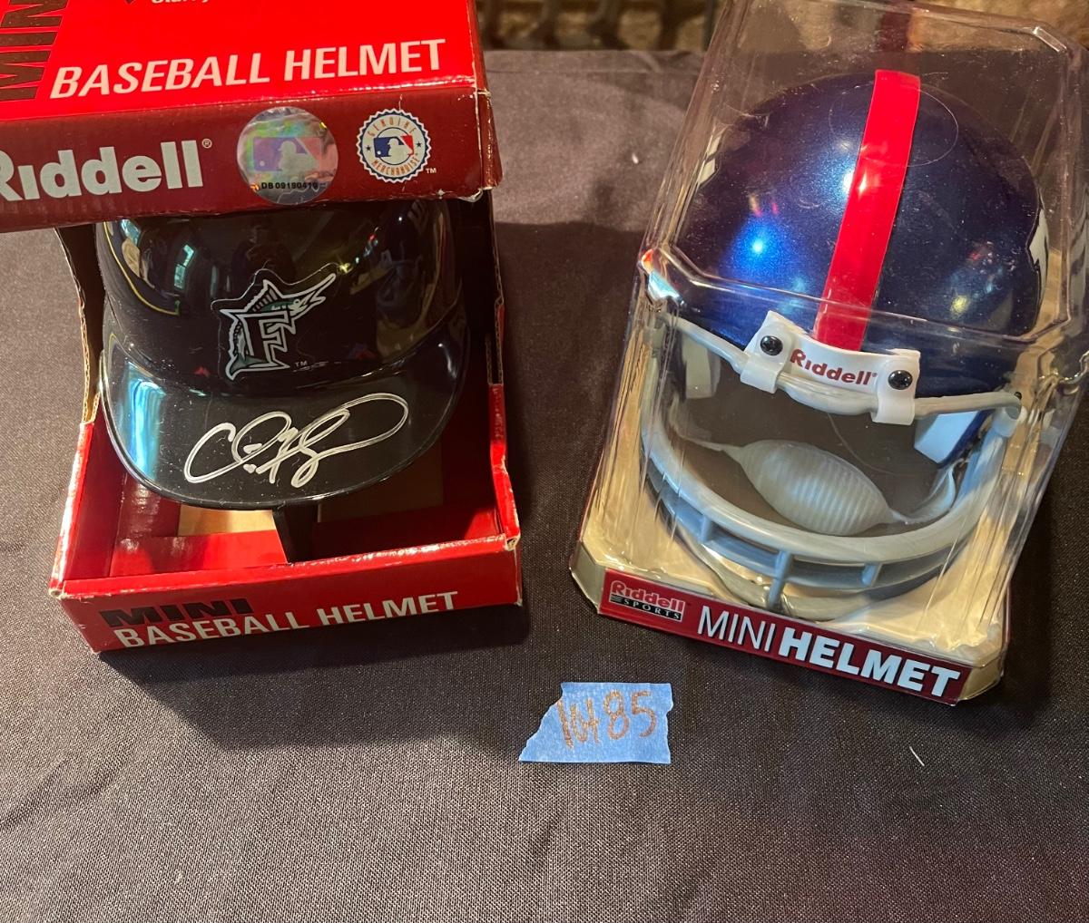 Lot of (2) collectible autographed MLB/NFL Riddel helmets