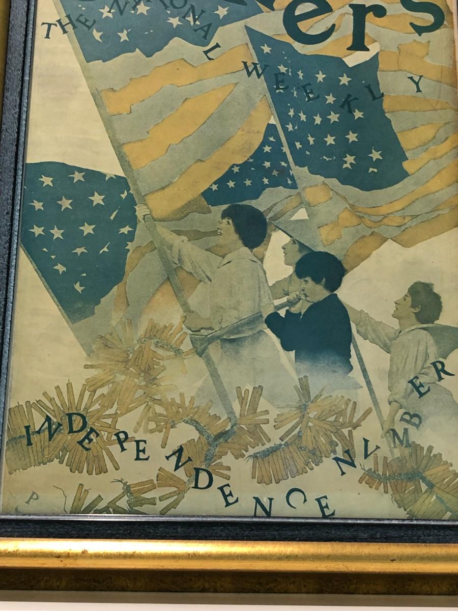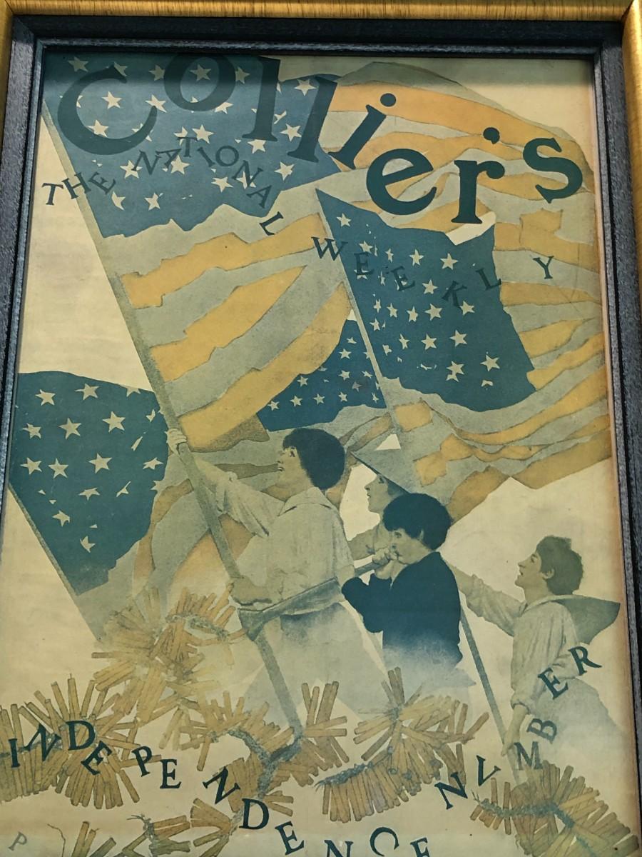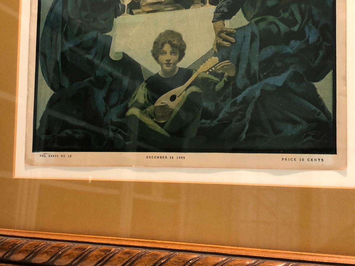 Great lot of 2 vintage print ads featuring illustrations by Maxfield Parrish. One is a Christmas scene with a hogs head feast, dated December 16, 1905. The other is a cover for Collier's The National Weekly, featuring an independence theme with boys carrying flags, says "independence" and "nvmber".