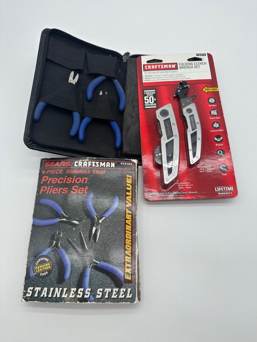 Lot of 2 Craftsman Tool Sets – Folding Clench Wrench Set & Precision Pliers Set (Missing 1 Pliers)