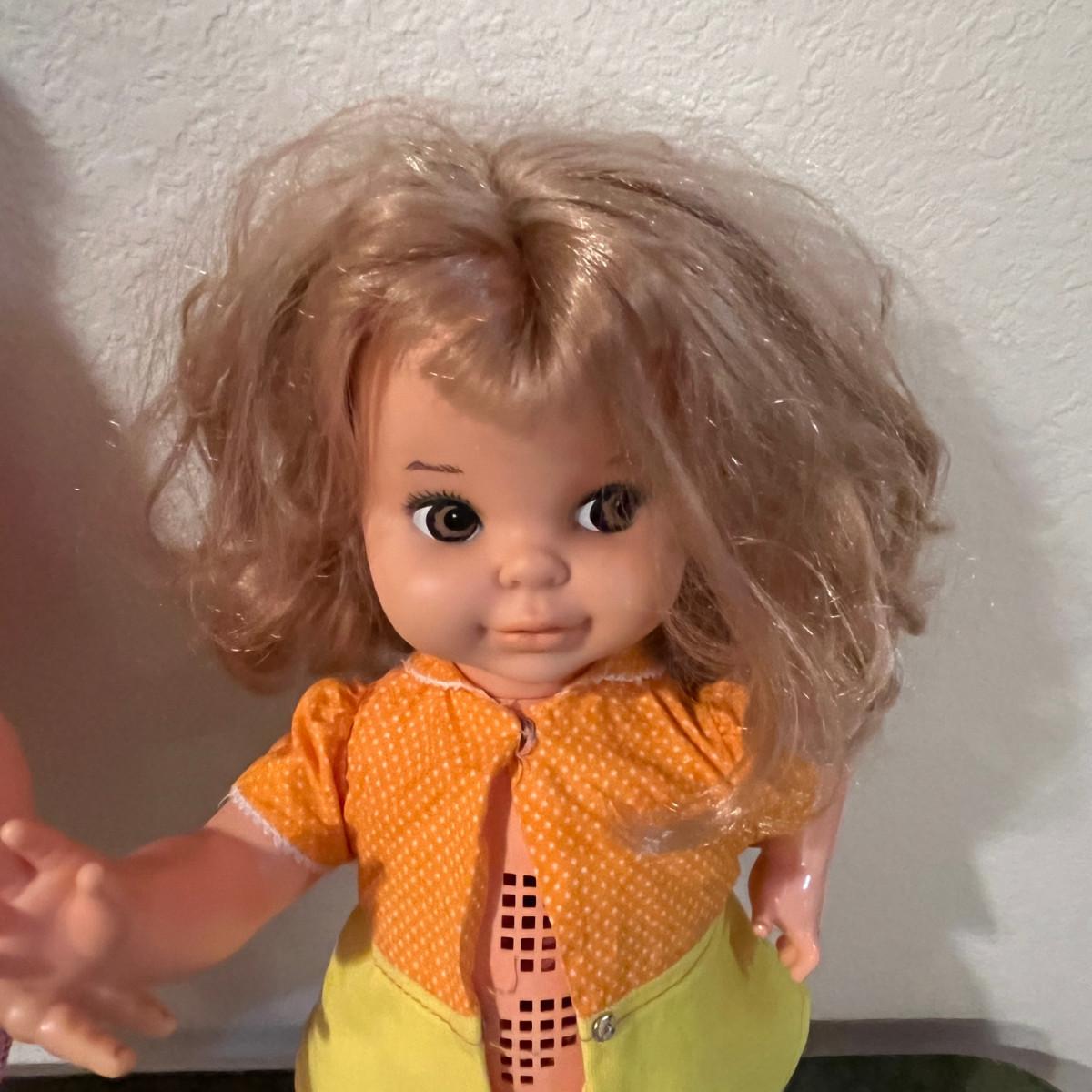 Don't know why, but looks like the little doll soiled herself! Don't believe the music box works on her.