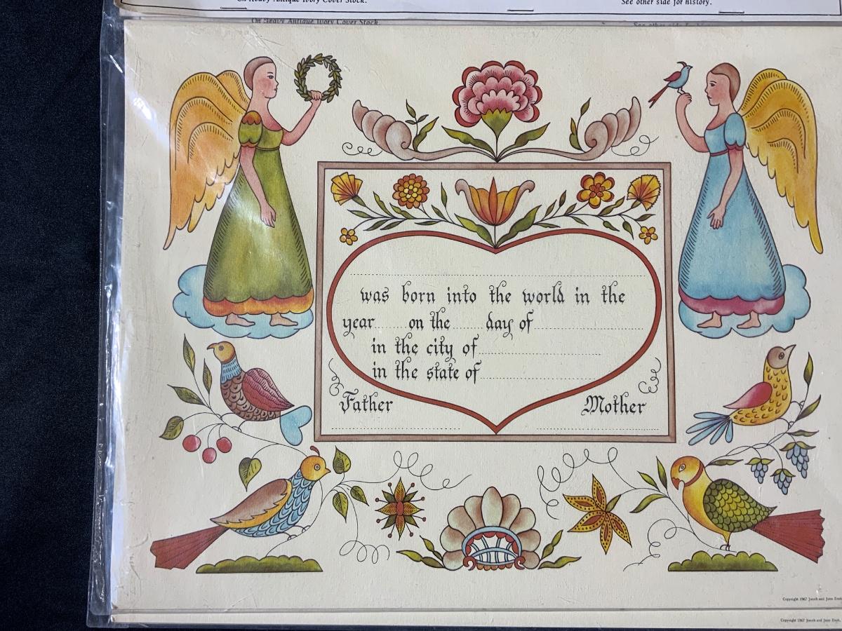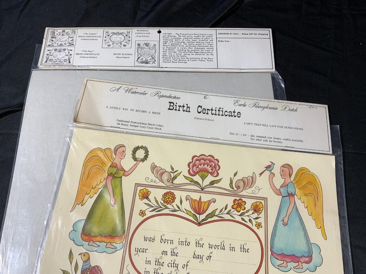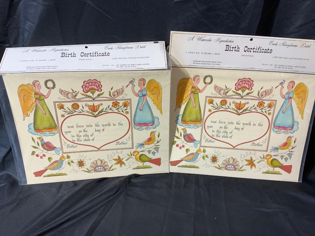 Lot of 2 Early Pennsylvania Dutch birth certificates, never opened