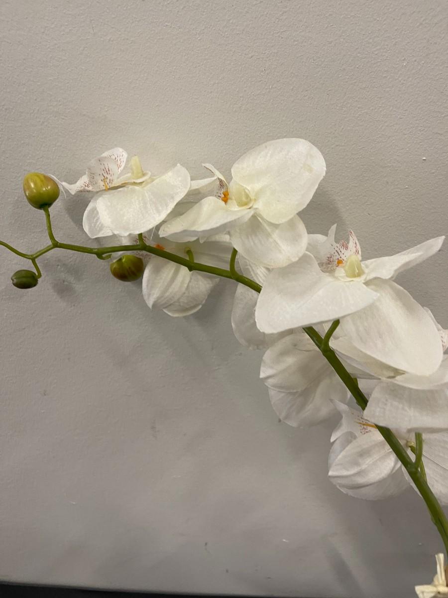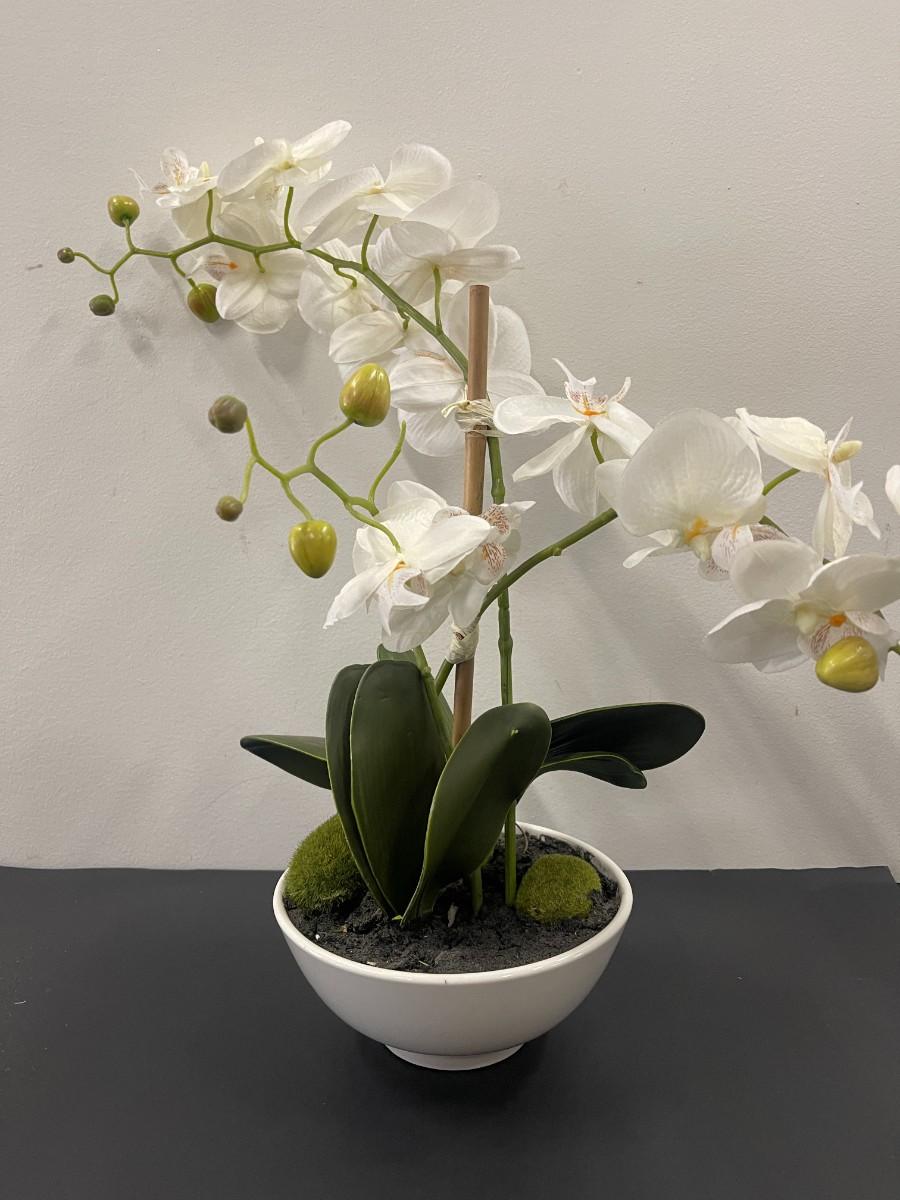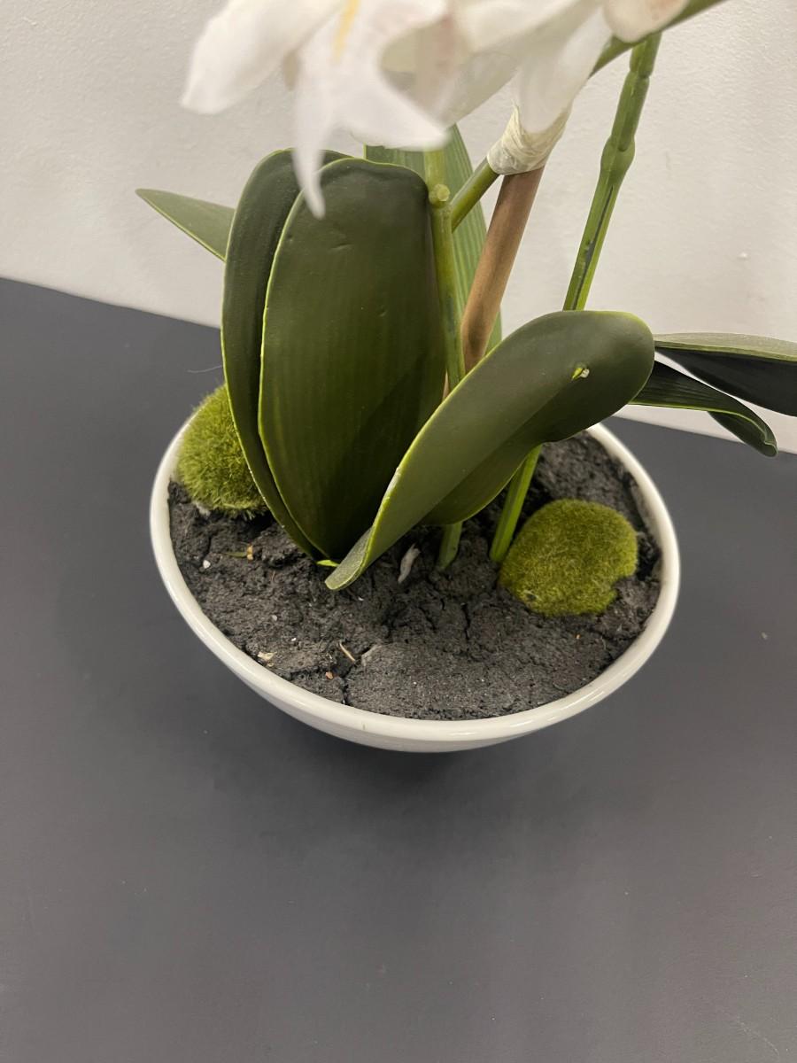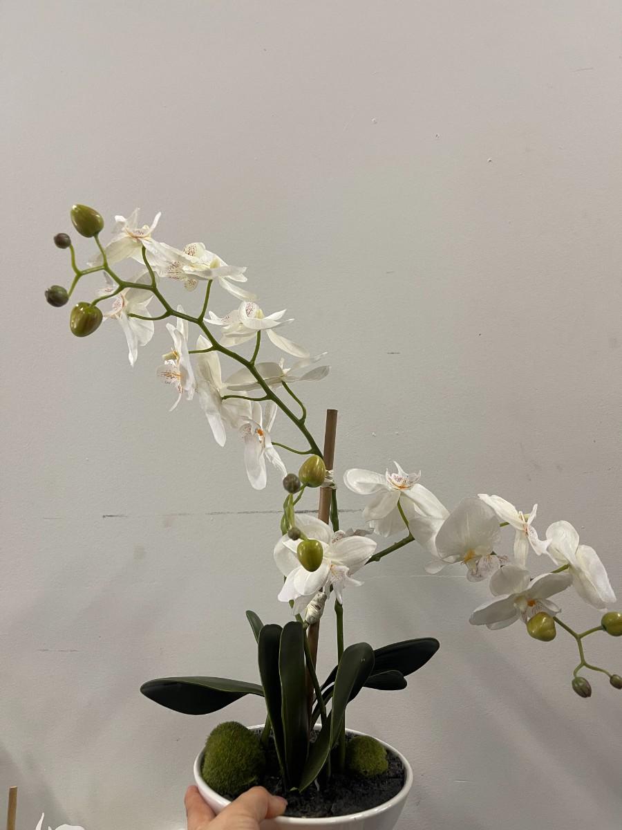 Lot of 2 faux potted white orchids. Very good condition.