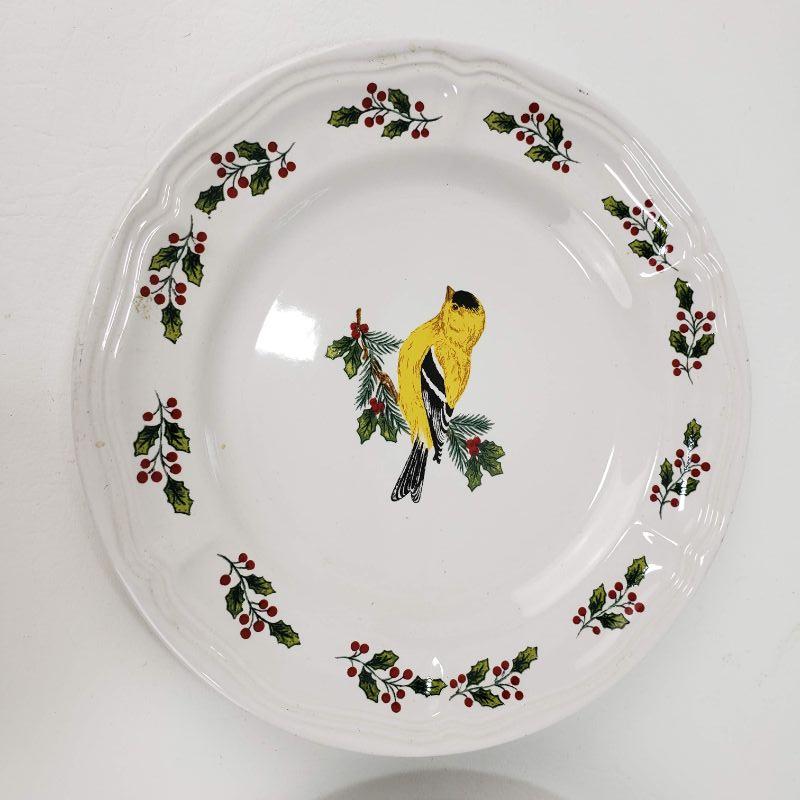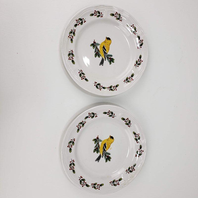 Lot of 2 Gibson Designs Plates - Yellow Goldfinch with Holly