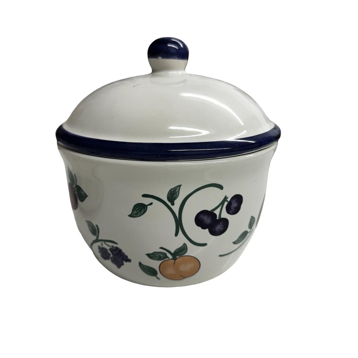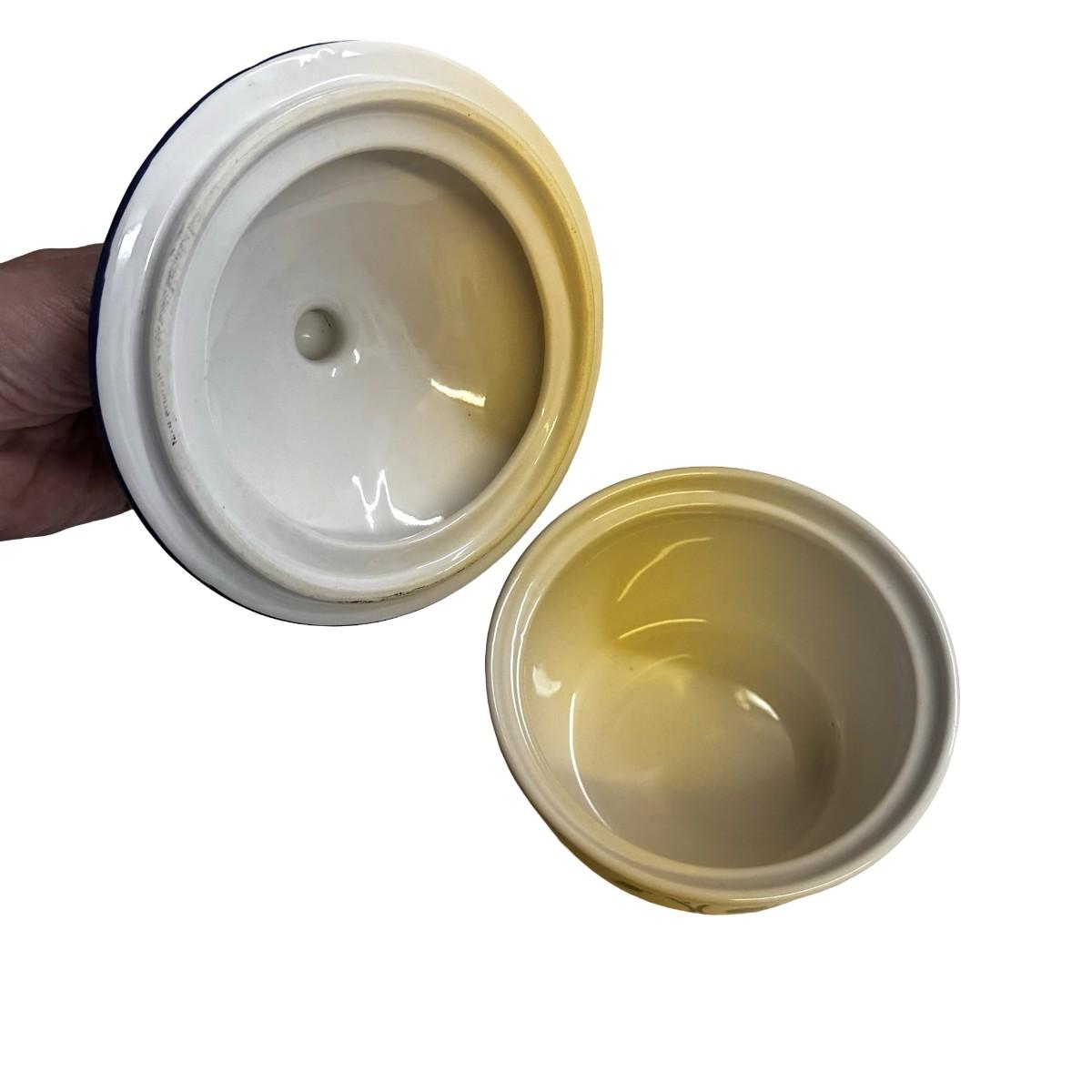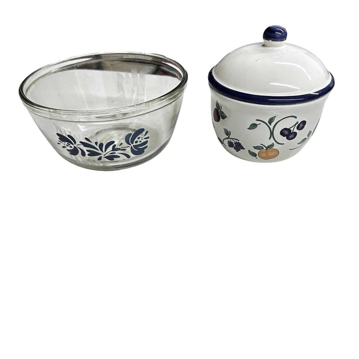 Lot of 2 Glass Bowl and Lidded Jar with Blue Decoration