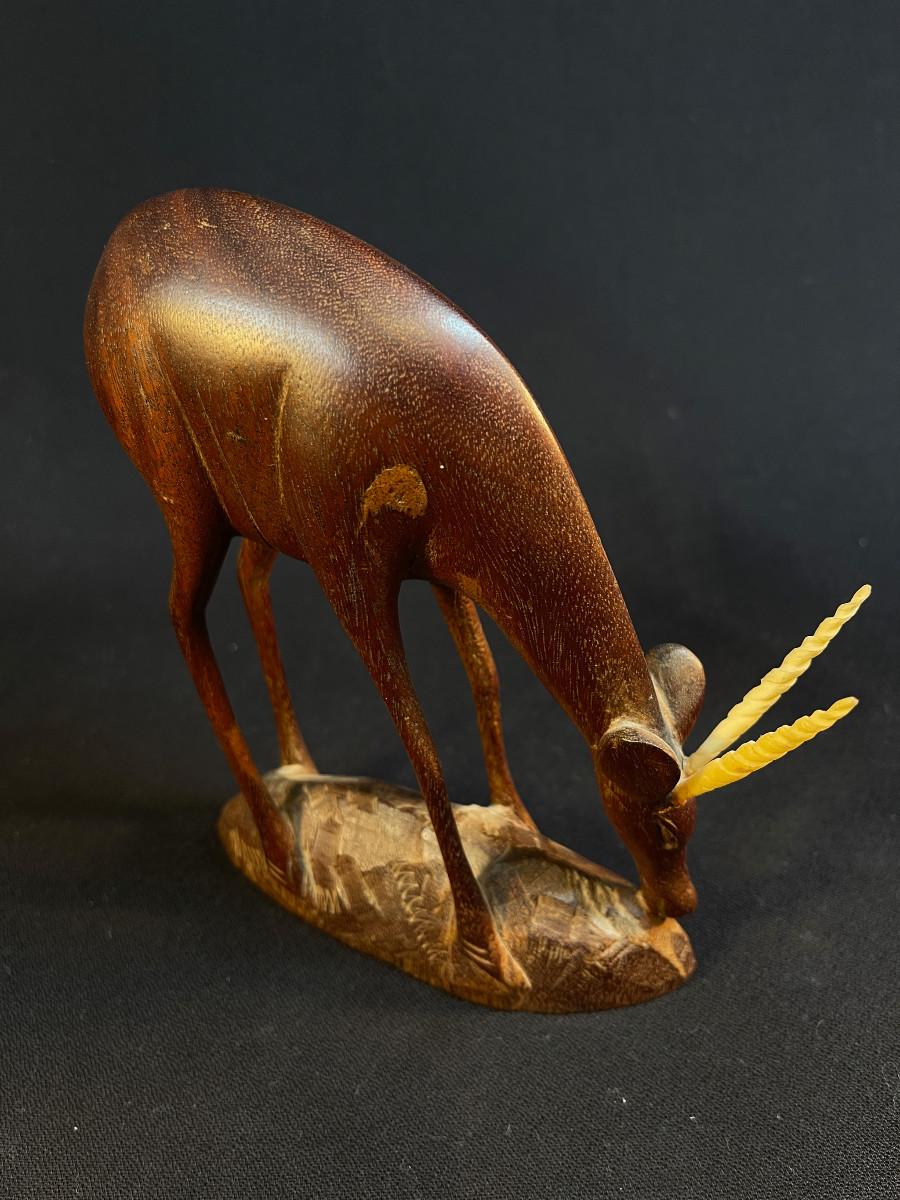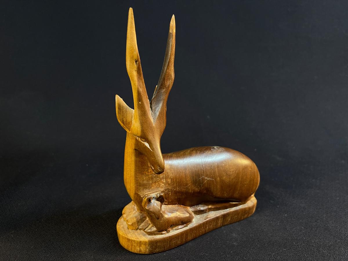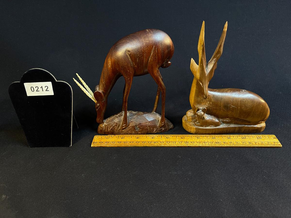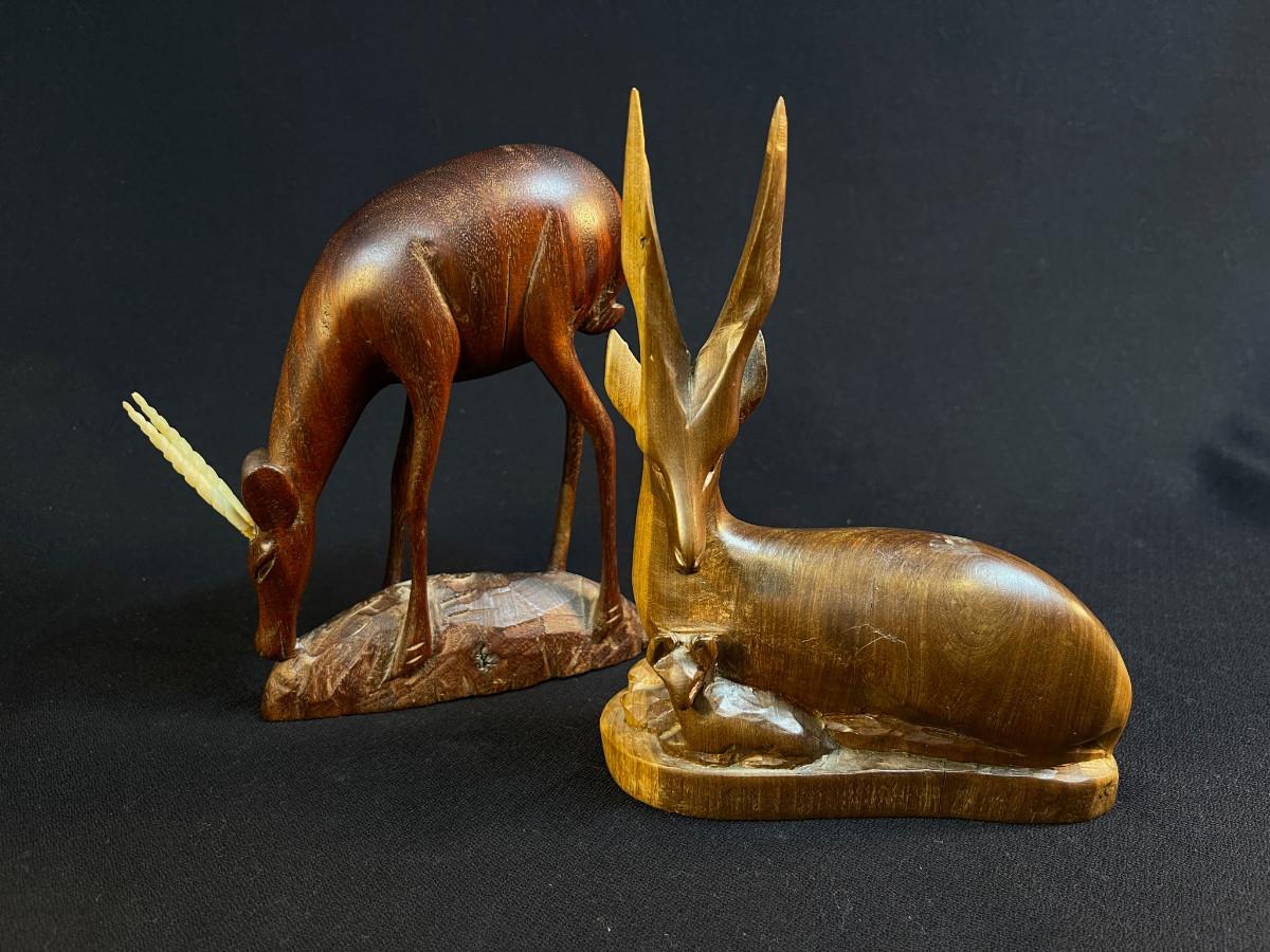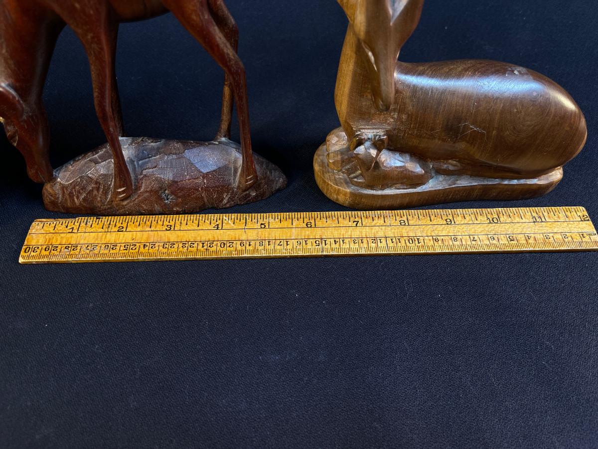 Lot of 2 Hand Carved Wood Graceful Gazelles