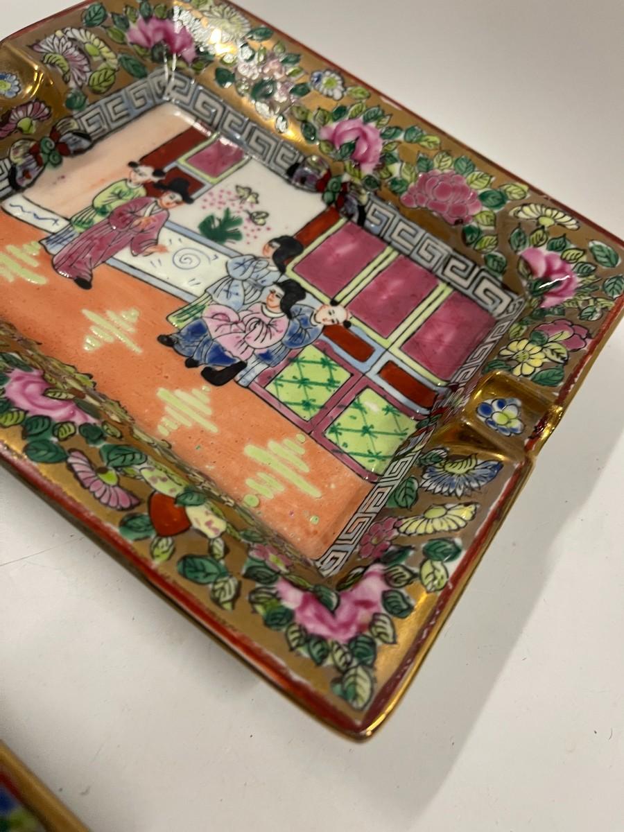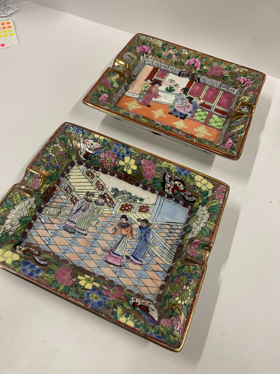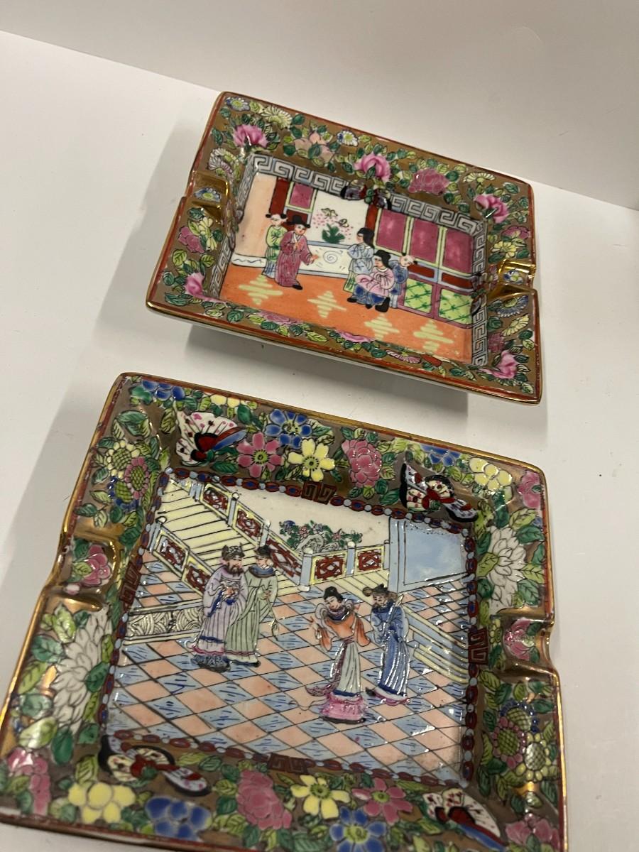 Lot of 2 Hand Painted Chinese Porcelain Ashtrays