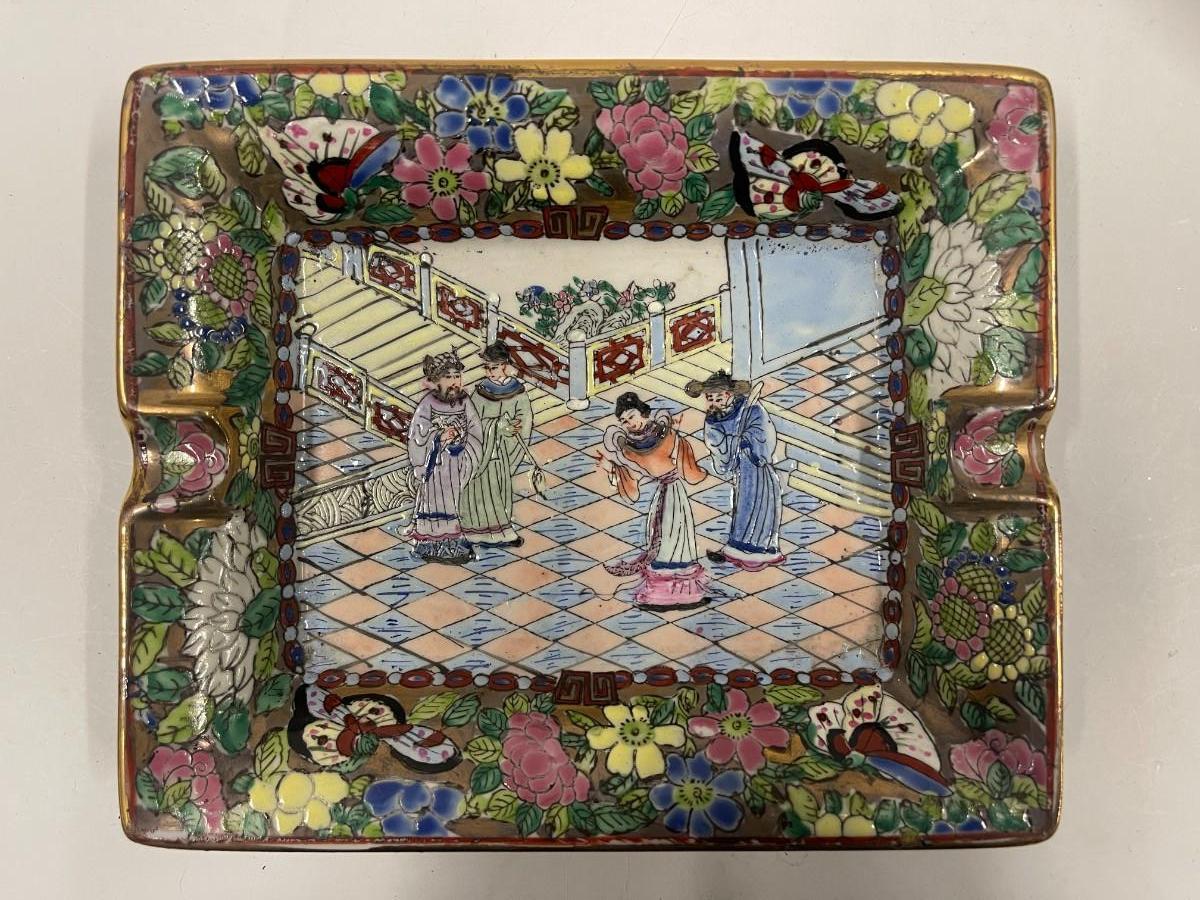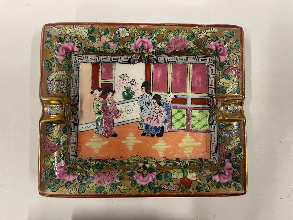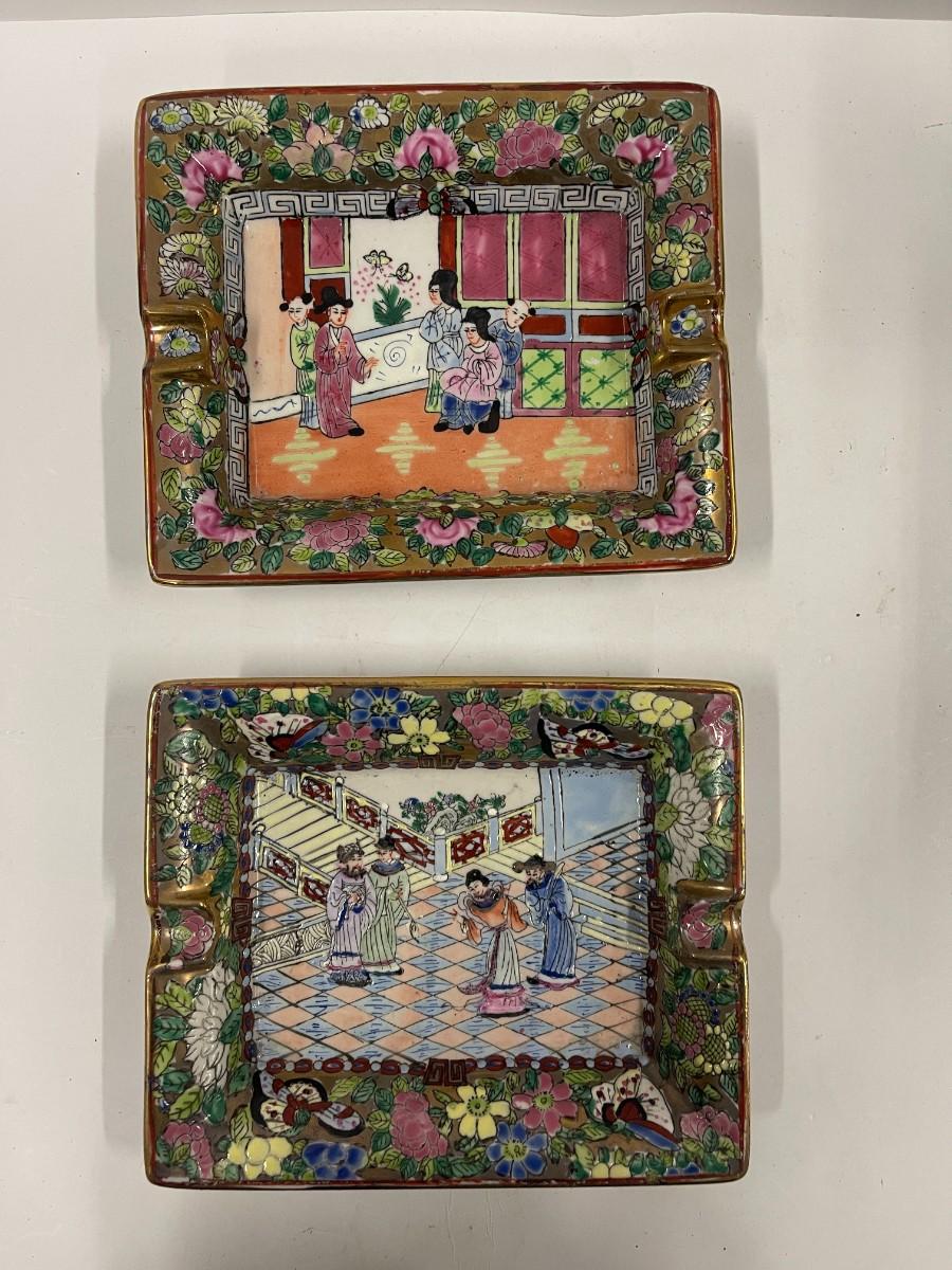 Lot of 2 Hand Painted Chinese Porcelain Ashtrays