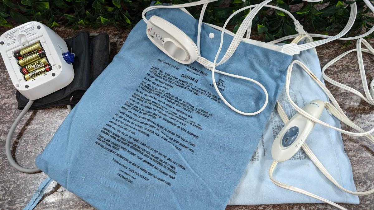 Lot of 2 Heating Pads and a Blood Pressure Machine Missing Battery Lid
