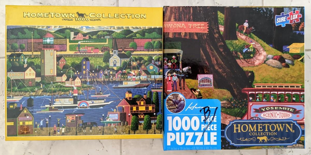 Lot of 2 Hometown Collection 1000 piece puzzles Heronim is the artist