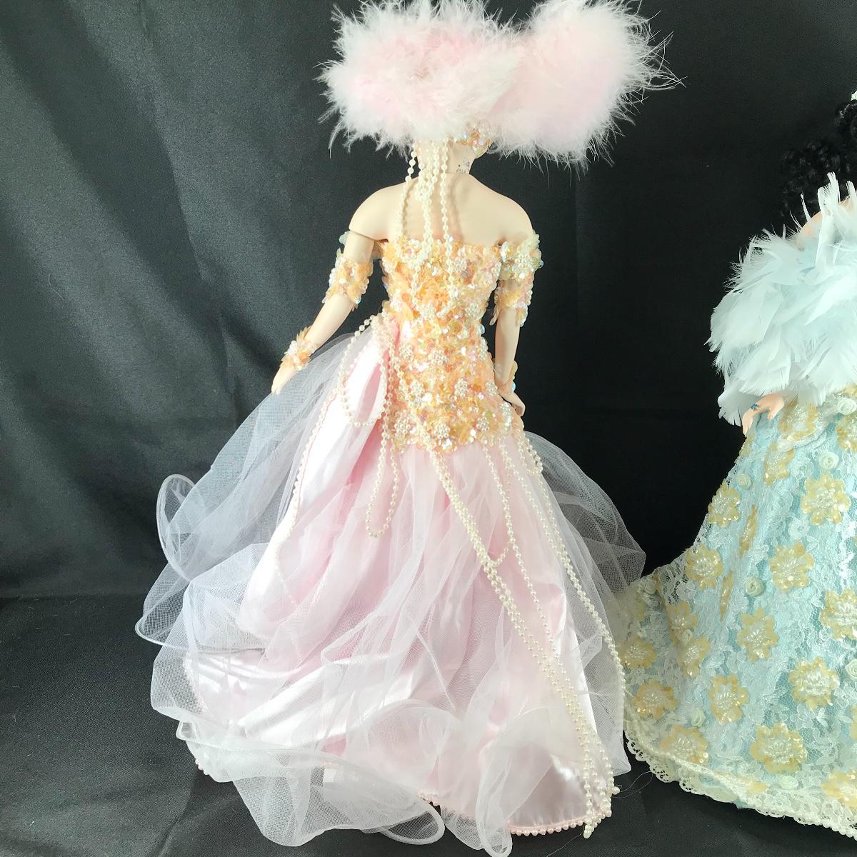 Up for auction or two exceptional jumbo porcelain dolls by Rustie. They are very ornate and in excellent condition. Each stands approximately 20 inches tall. Each doll has its own accompanying base stand. The markings on each of these dolls suggests that they are limited edition.