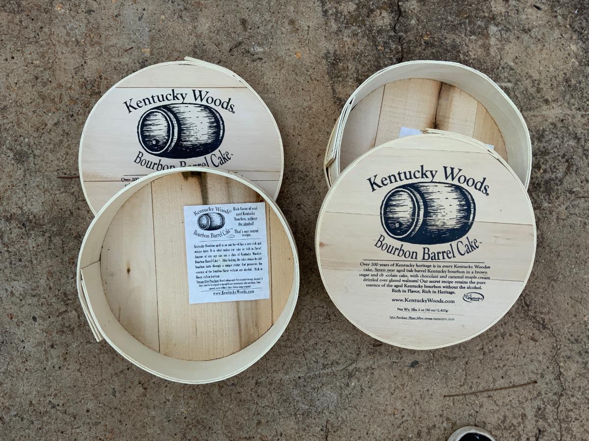 Lot of 2 Kentucky Woods bourbon barrel cake boxes