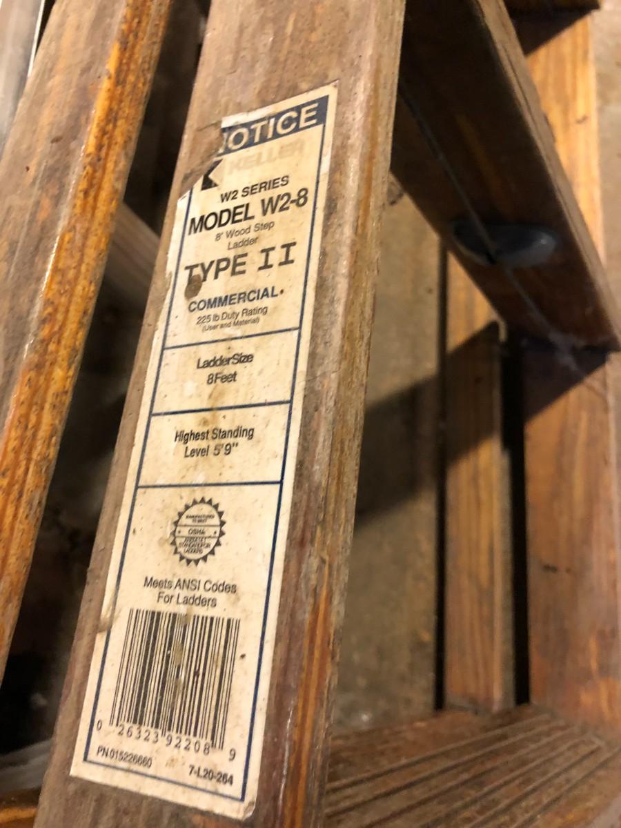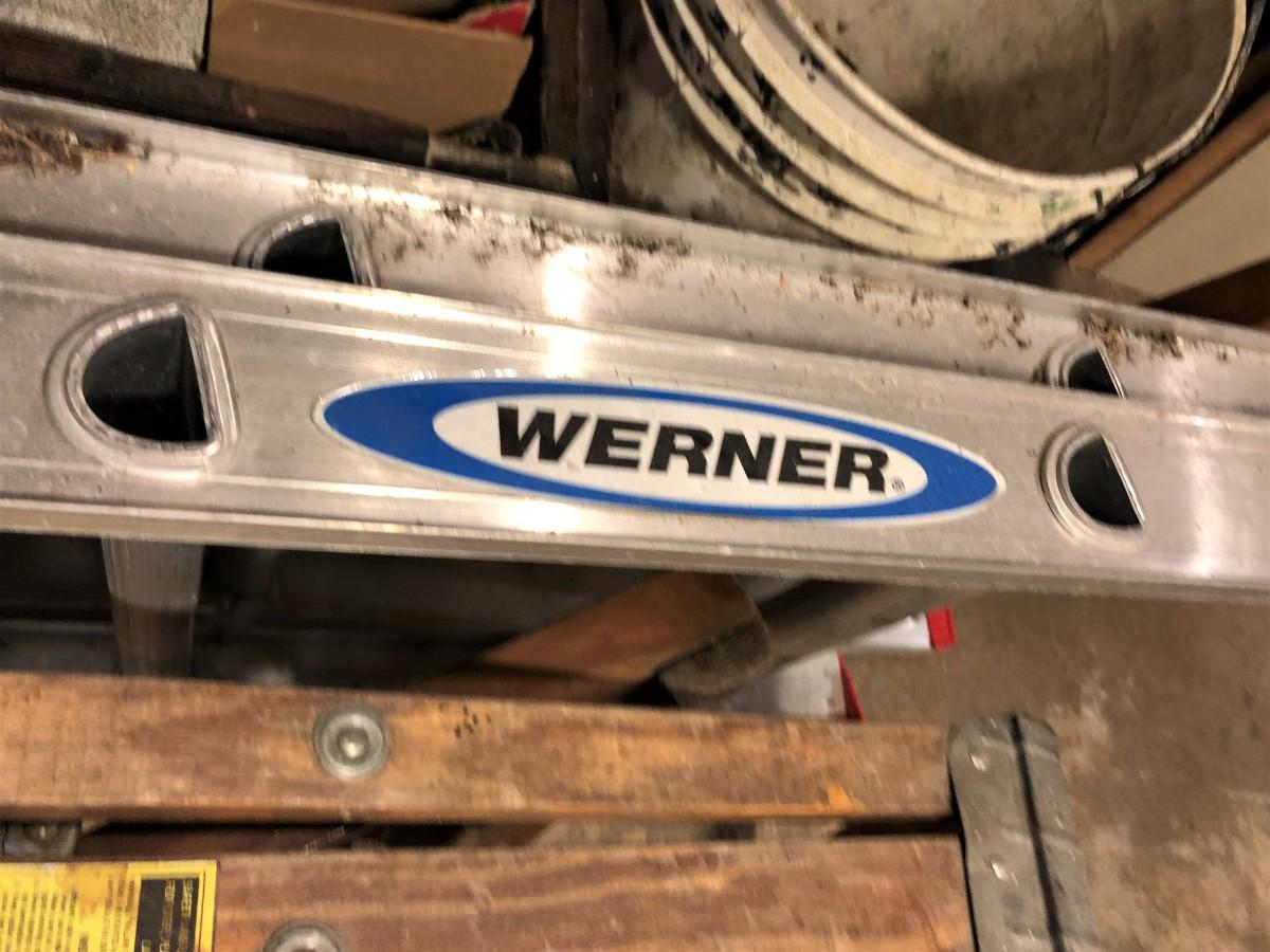 Lot of 2 Ladders 8 Ft Wood and Werner Metal Double Ladder. Condition as shown.