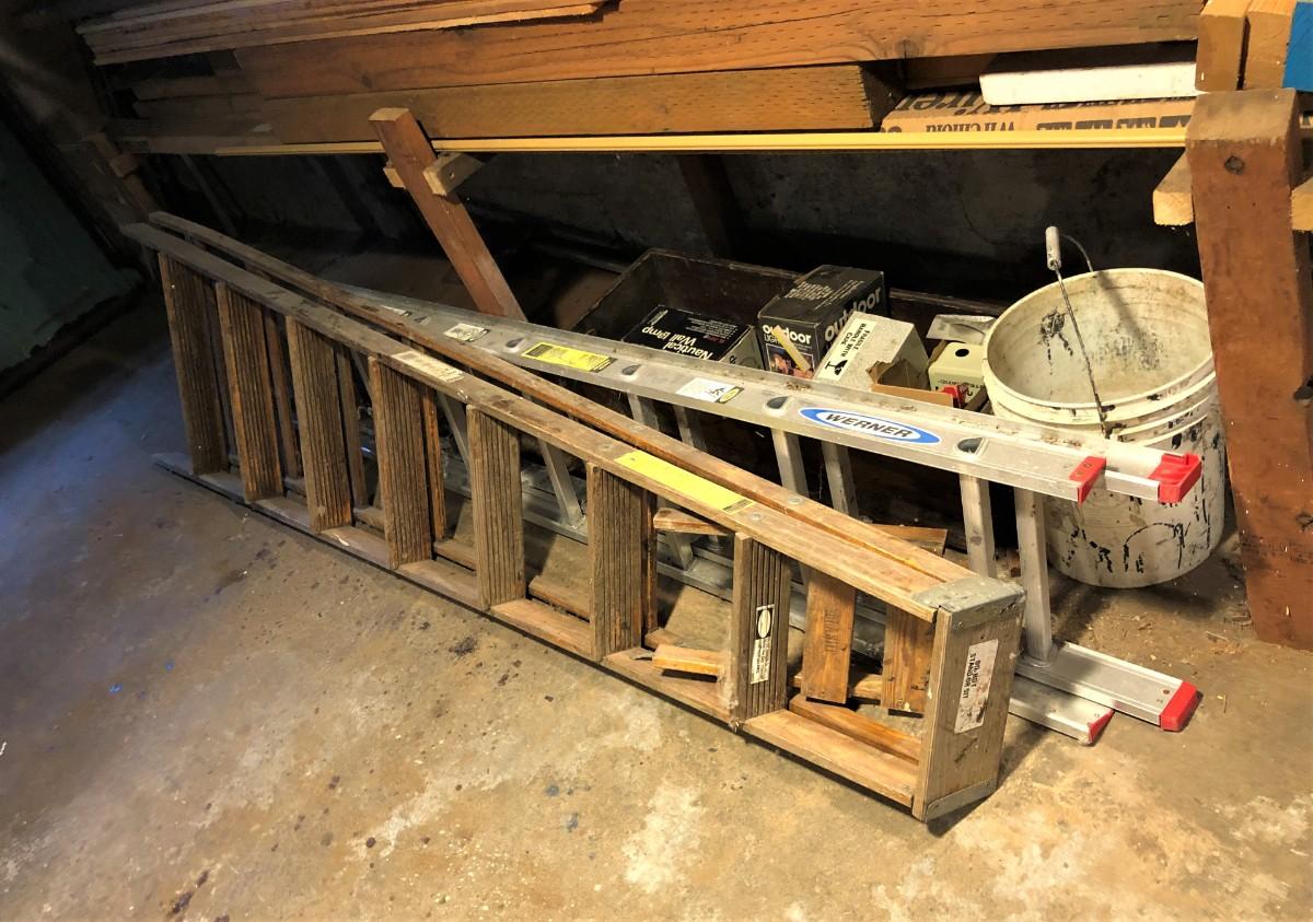 Lot of 2 Ladders 8 Ft Wood and Werner Metal Double Ladder