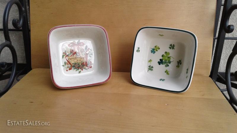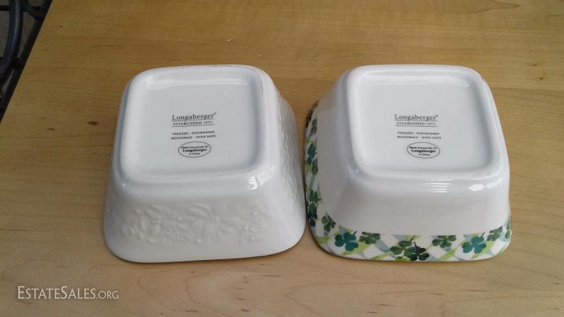 This lot of 2 items comes with a Longaberger Nature’s Garland Dinnerware Small Square Dish (14 oz), 5" and a Lucky Twist Dish Small Square Dish (14 oz) 5“